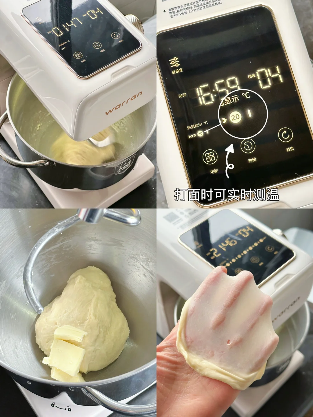 这款华伦测温厨师机自带测温功能,能实时显示面温,打面时再不用担心面温会不会高了。特别适合新手小白。