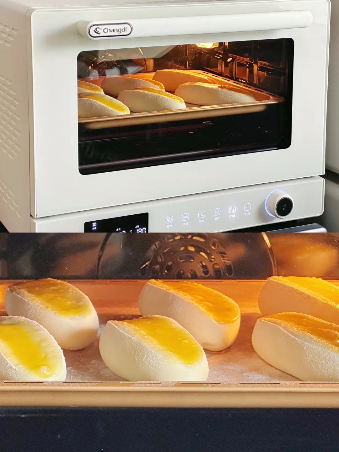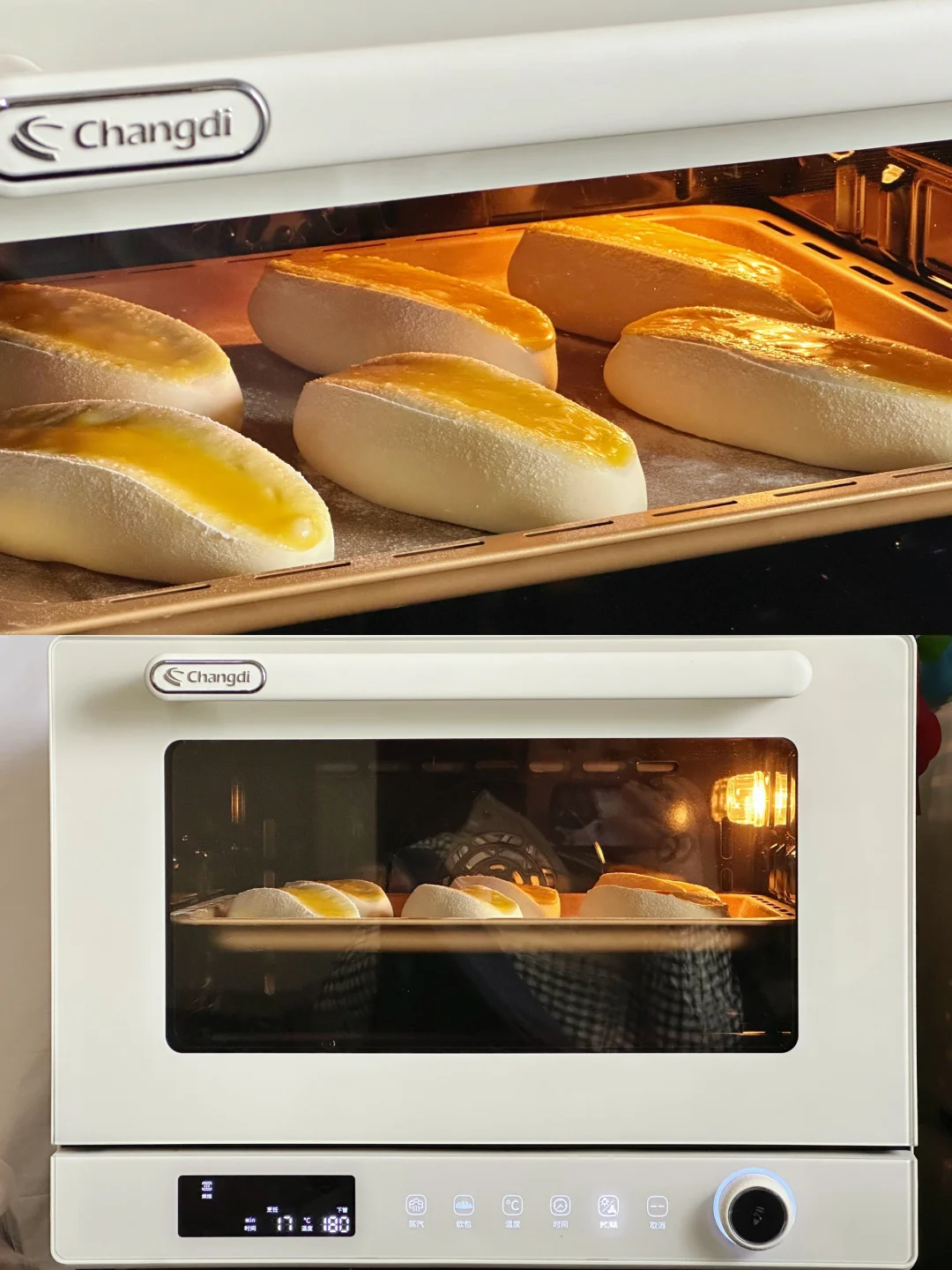 6️⃣烤箱提前预热,放入预热好的长帝S1pro 烤箱中,上下管180°C烘烤18~20分钟左右。出炉,震热气,立即脱模。
