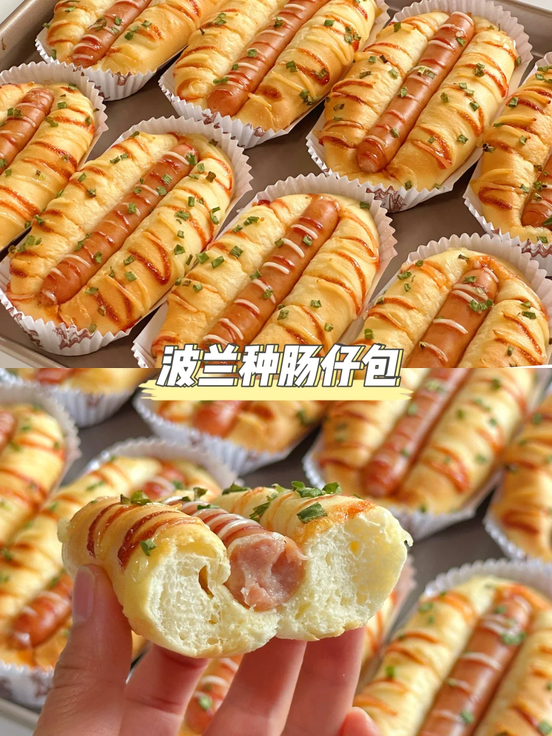肠仔包真的是一定要做的面包!咸口面包真的好好吃!趁热还能吃到香肠爆汁,绝对是出炉秒光系列~
