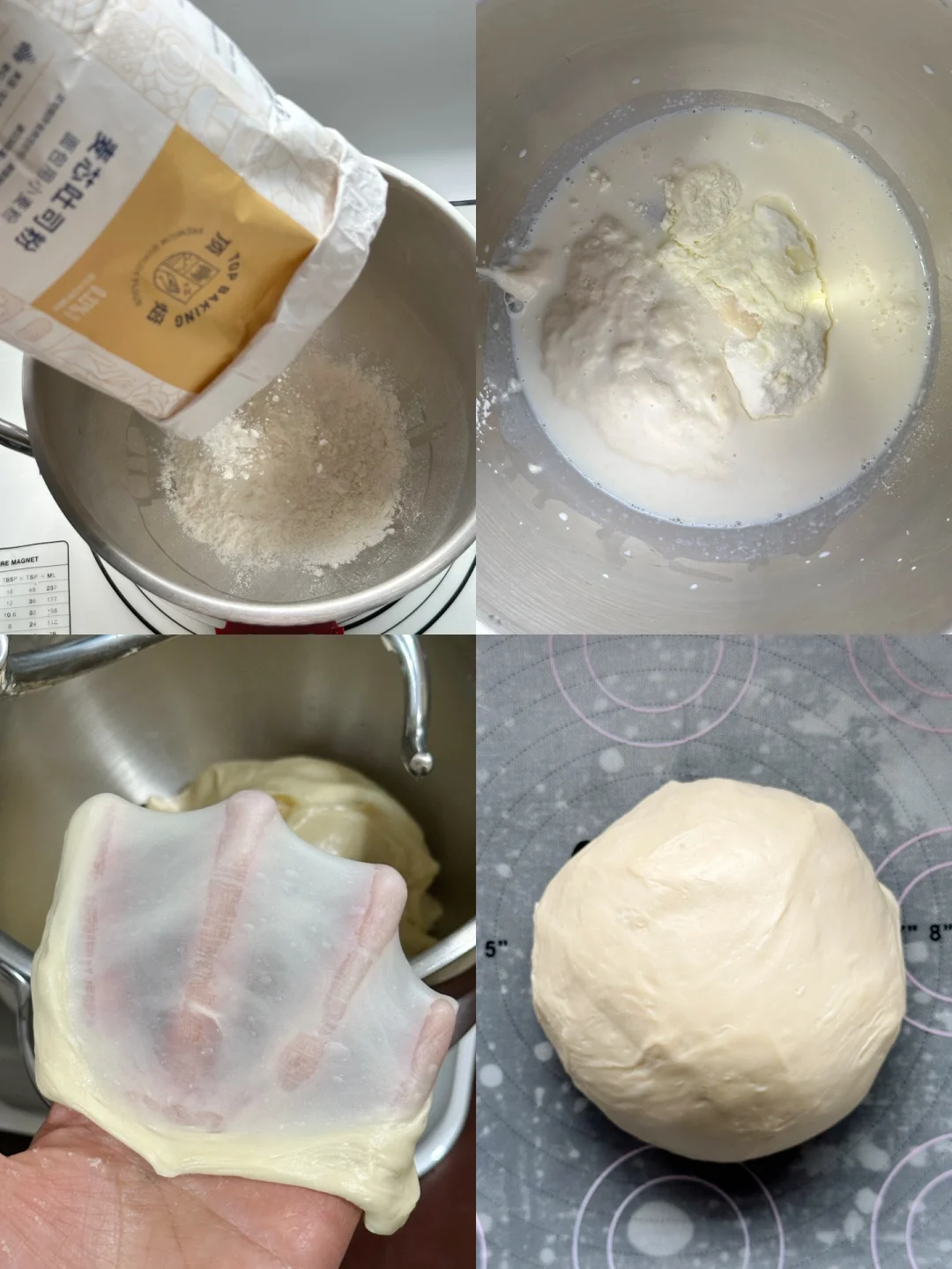 2️⃣除黄油以外的所有面团材料(包括波兰种)放入厨师机桶内揉成光滑的面团,加入黄油揉至完全拓展阶段。