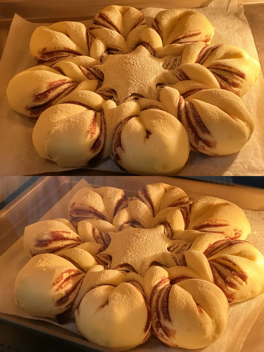 6️⃣放发酵箱温度32度,湿度80%发酵至1.5-2倍大,发酵好的面团表面撒上一层薄薄的面粉