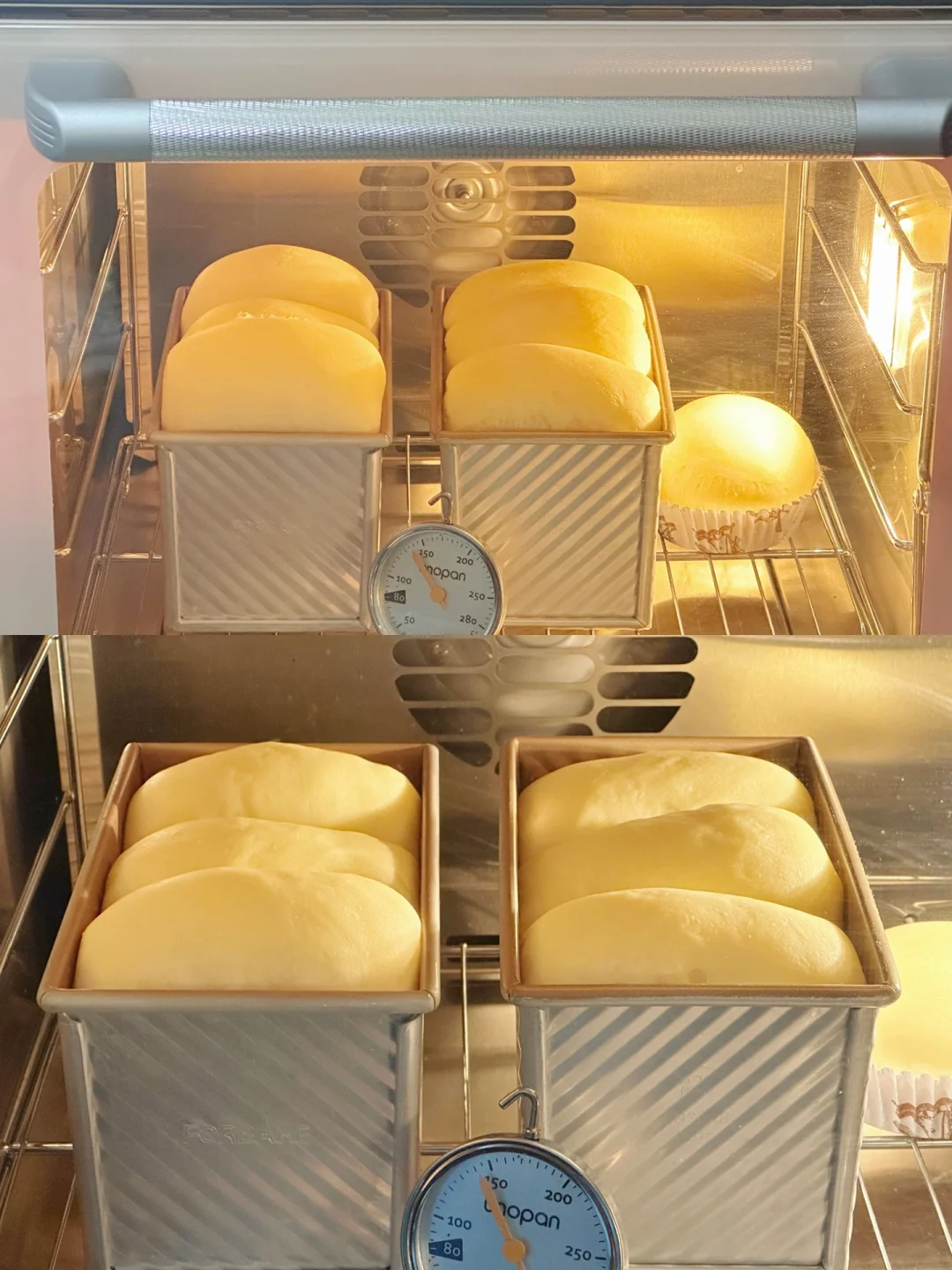 5️⃣依次做好, 放入模具中,在温度32°C左右,湿度80%的环境下发酵至模具9分满。