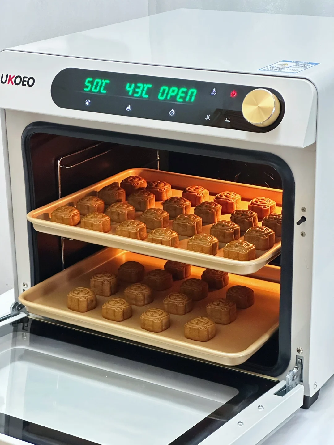 🔺风炉模式通过背部发热管加热,经扇叶将热风吹到烤箱各个角落使受热均匀。饼干、月饼、小餐包之类的都可以用风炉烘烤,多层同烤不仅出量,上色也是很均匀的!
