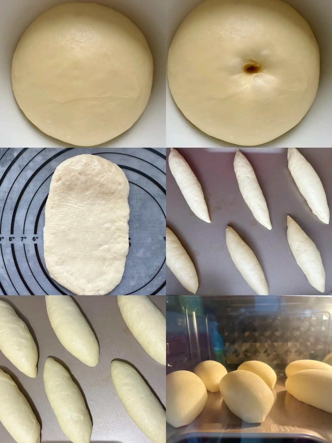 5️⃣依次做好, 放入模具中,在温度32°C左右,湿度80%的环境下发酵至两倍大。