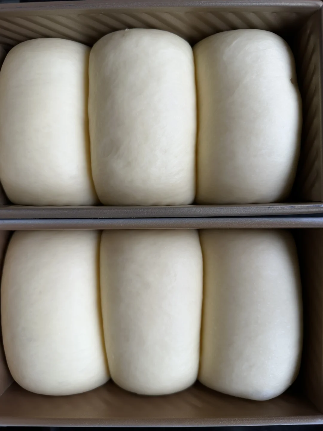5️⃣依次做好, 放入模具中,在温度32°C左右,湿度80%的环境下发酵至模具9分满。