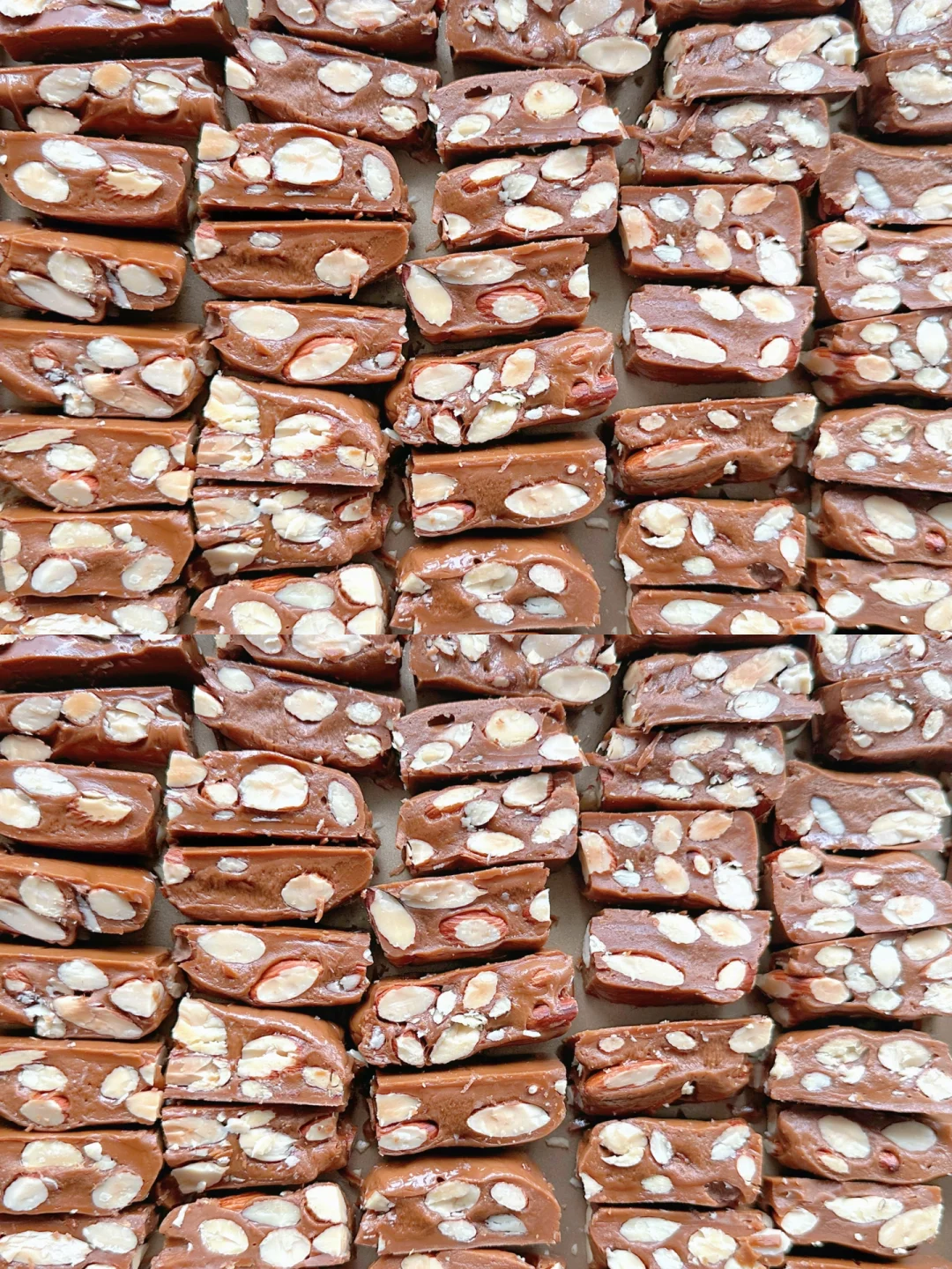 自从入了烘焙坑,每一年最爱吃的就是杏仁太妃糖了!从来不买糖吃的我每一年都会做上几斤跟家人朋友分享,真的是太好吃了!今年用了肥呀肥老师的配方,不出油,也不粘牙,口感也是很棒的!以前熬糖温度会熬到170左右,会有焦糖香味,老师的方子温度159度,会稍微甜一点,但是口感很香,自己熬出来的太妃糖,有特别浓的奶香味!