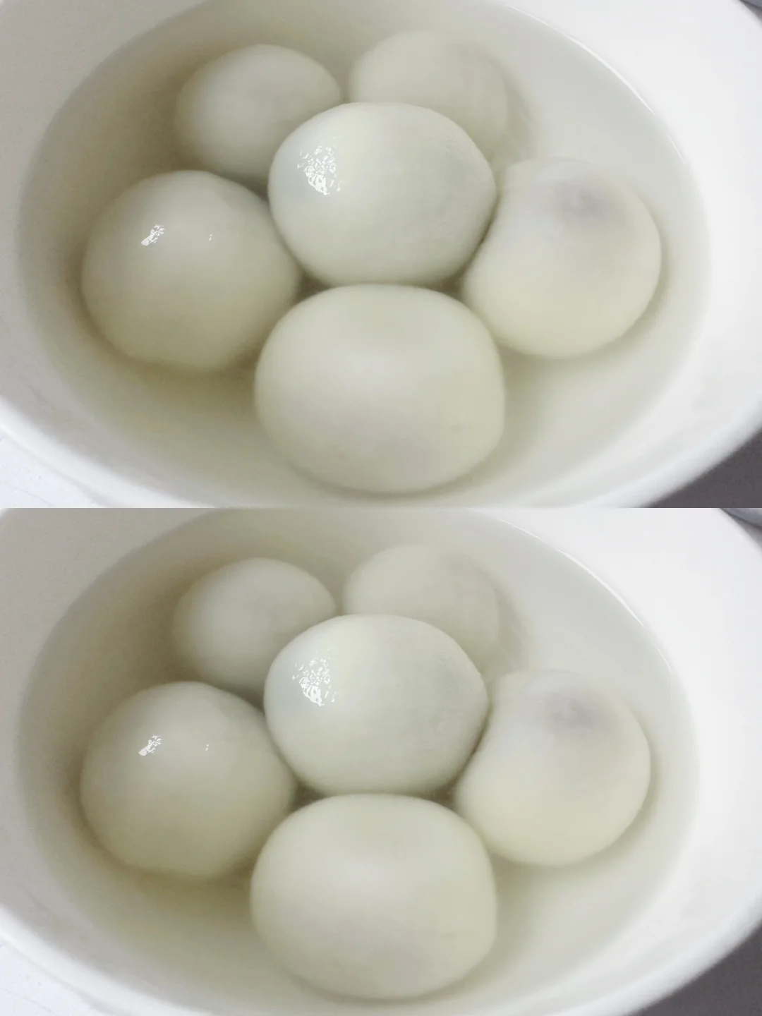 ☘️从粉团中取十分之一,压扁,放水开水中煮至半透明熟透,过冷水,加入原粉团中揉均匀,揉至不粘手就可以了。