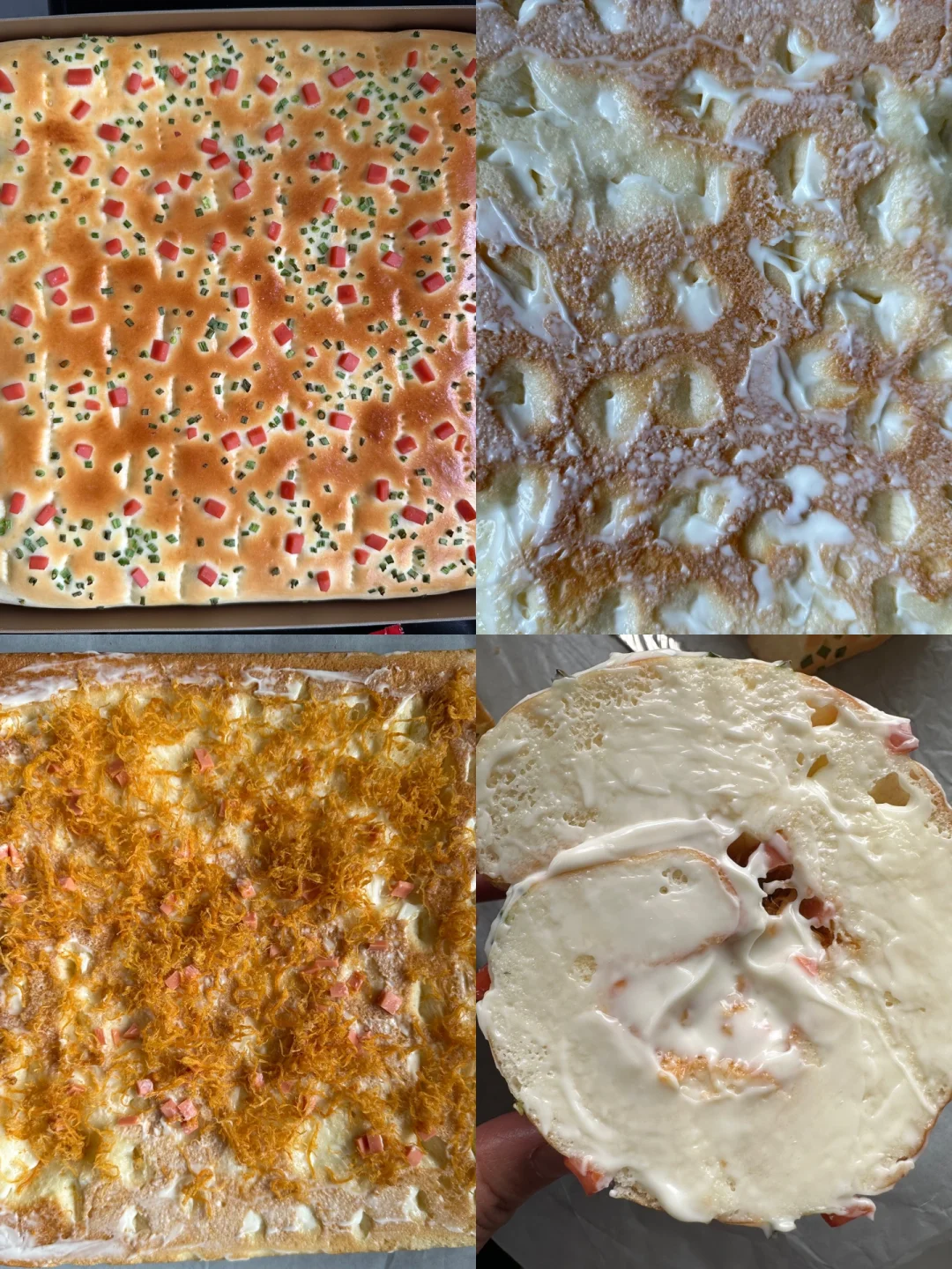 另需食材:鸡蛋液少许,香葱碎,火腿丁,肉松,沙拉酱