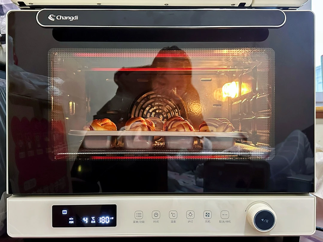 6️⃣提前打开大白鲸风炉烤箱180度预热,发酵好后放入烤箱上下管180度烘烤15分钟左右,上色盖锡纸。