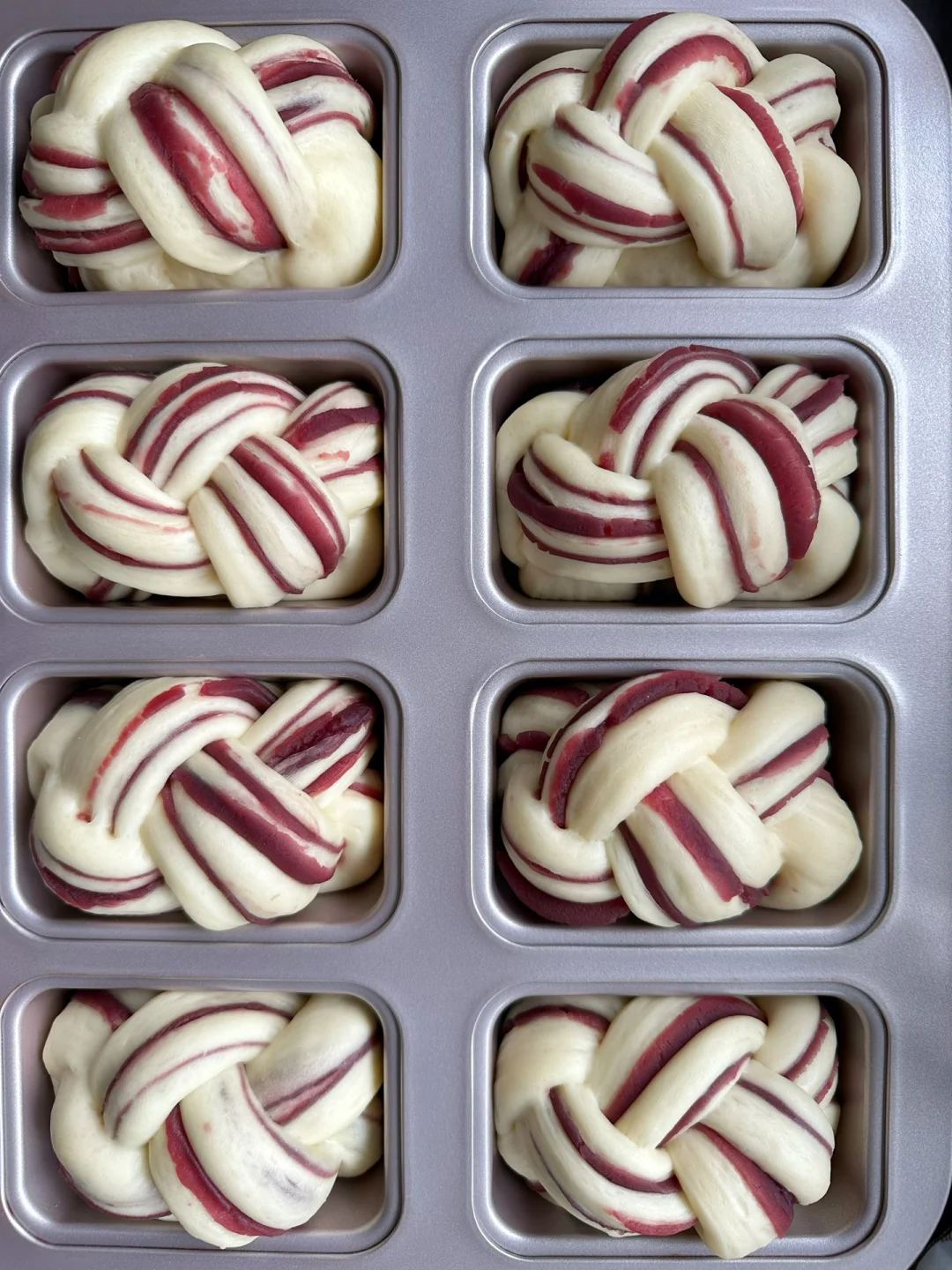 5️⃣ 全部做好后放入发酵箱32°C,湿度75度左右发酵至两倍大,表面刷上蛋液。