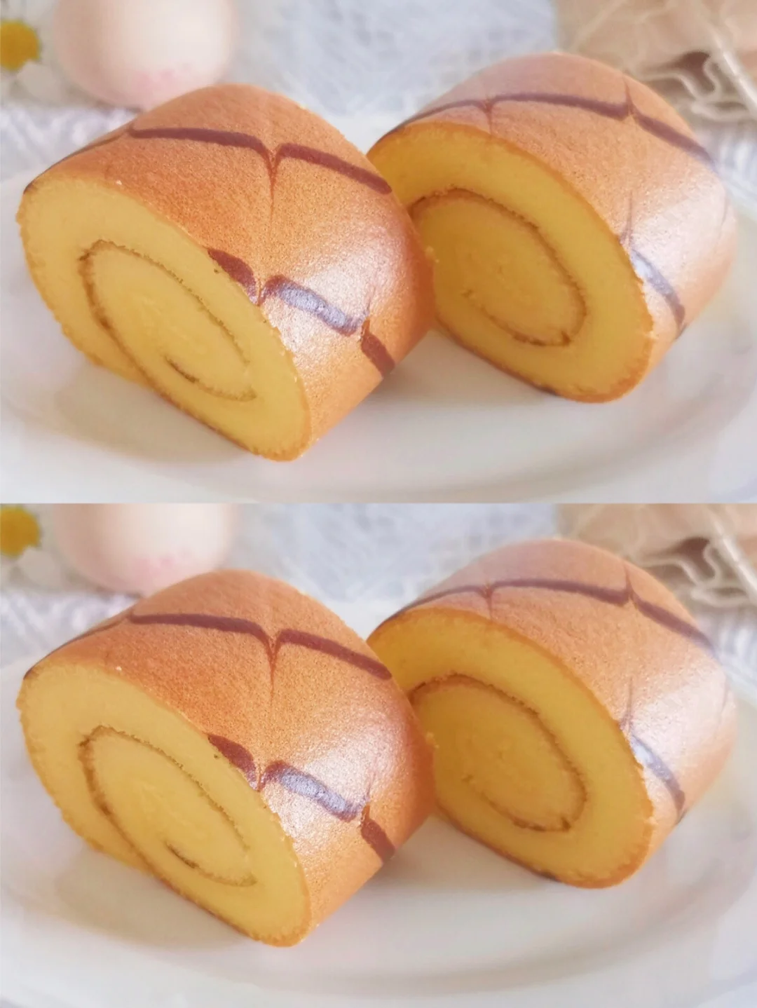 🌸将烤盘轻震一下,送入预热好的烤箱,中层,上下火180度,烘烤20分钟左右,最后几分钟开热风循环,这样蛋糕卷才不容易掉皮。
