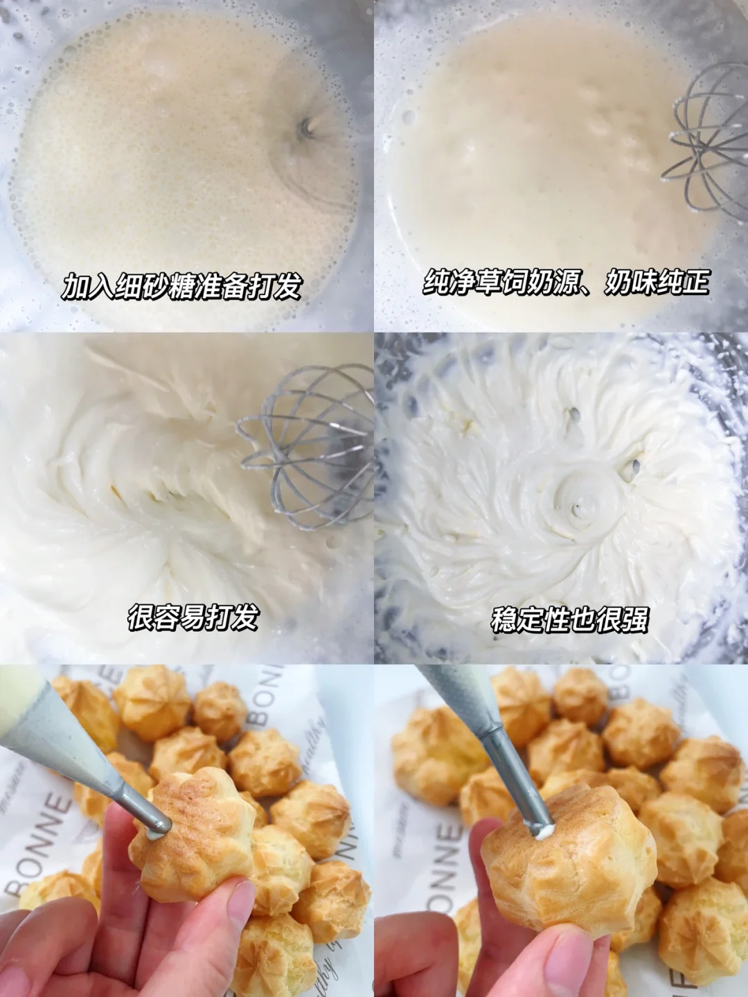 做这种奶油小泡芙真的是我家小朋友的最爱!小小一个也是很适合小孩子!而且艾恩摩尔草饲奶油添加剂也很少,给家里小朋友吃非常安心!姐妹们赶快get同款试试吧~~
