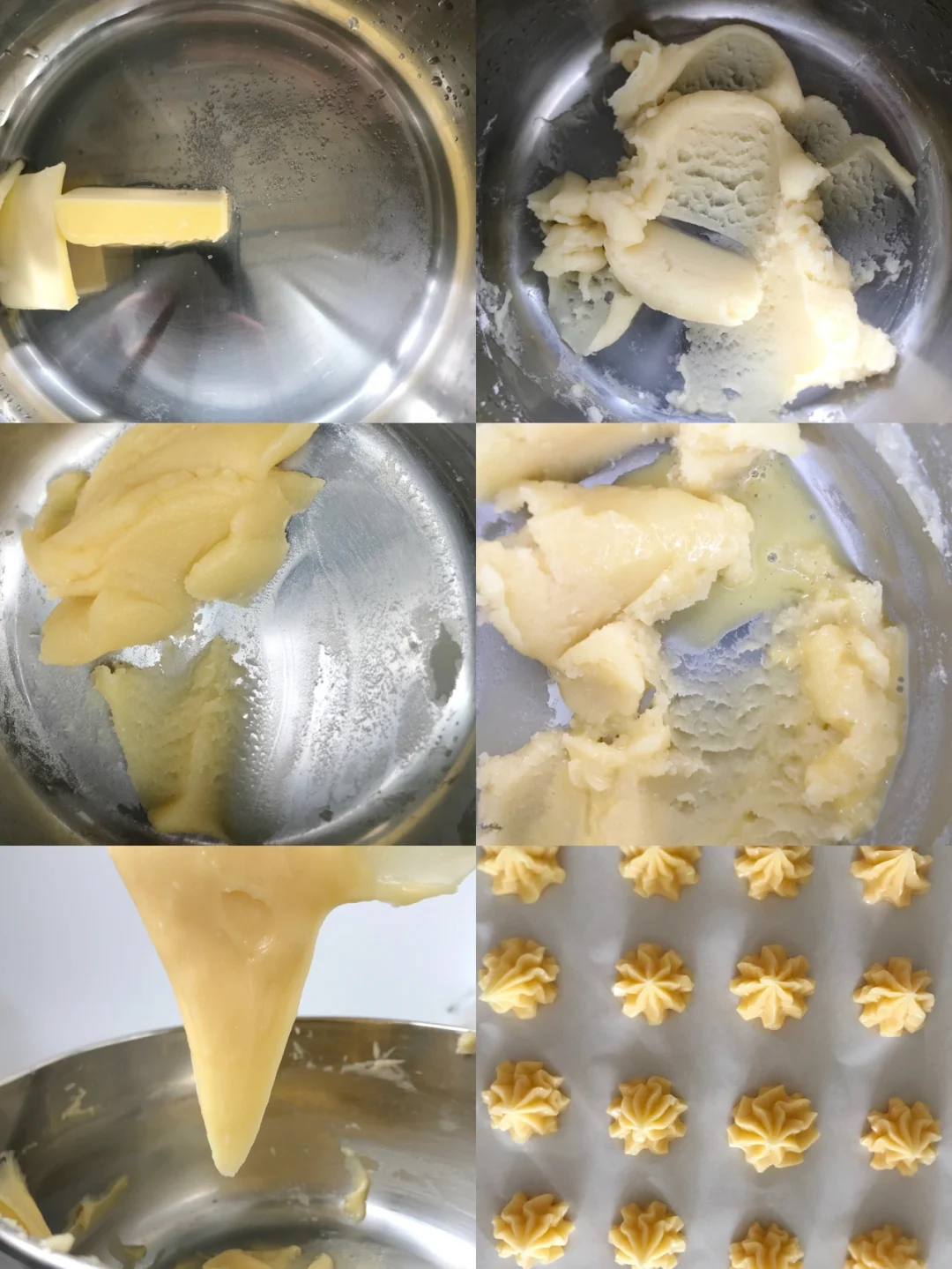 ⚠️泡芙成功的关键在于面糊的干稀程度,还有烤箱的温度!新手宁可稍干一点也不要太稀!烫面不会掌握的时候也可以稍微多炒一下~烤箱一定要提前预热,高温才能膨胀!