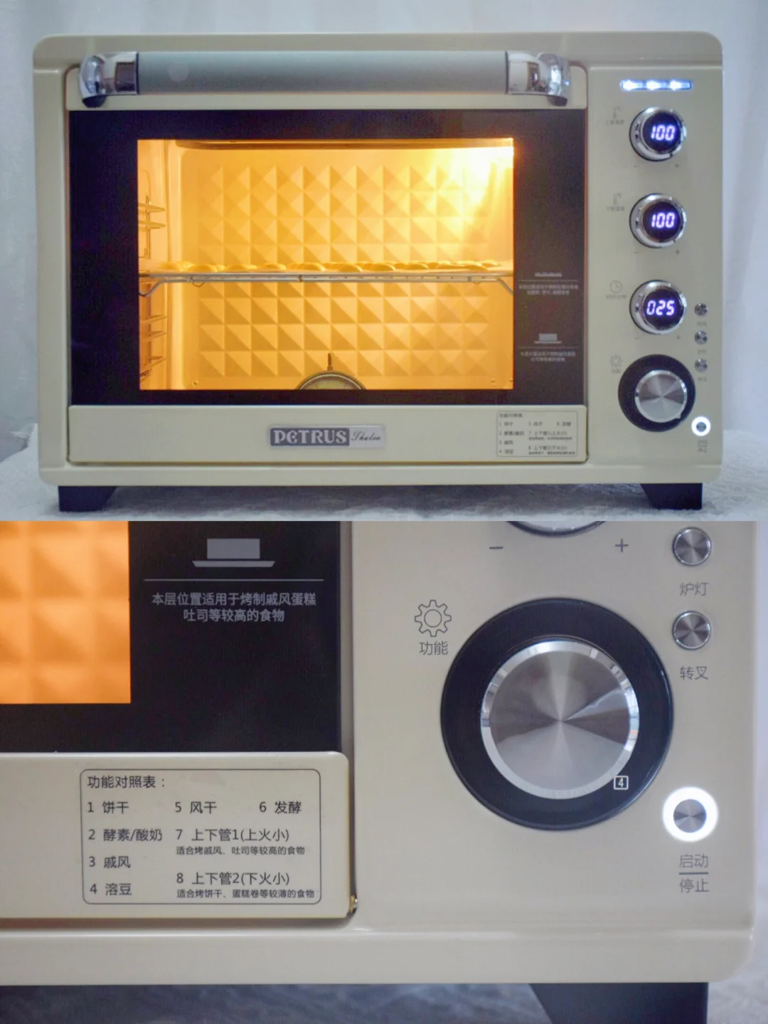🌼先把烤箱打开预热,这款柏翠5400小海绵烤箱有自带的预设功能,可以直接选择溶豆模式就可以了!