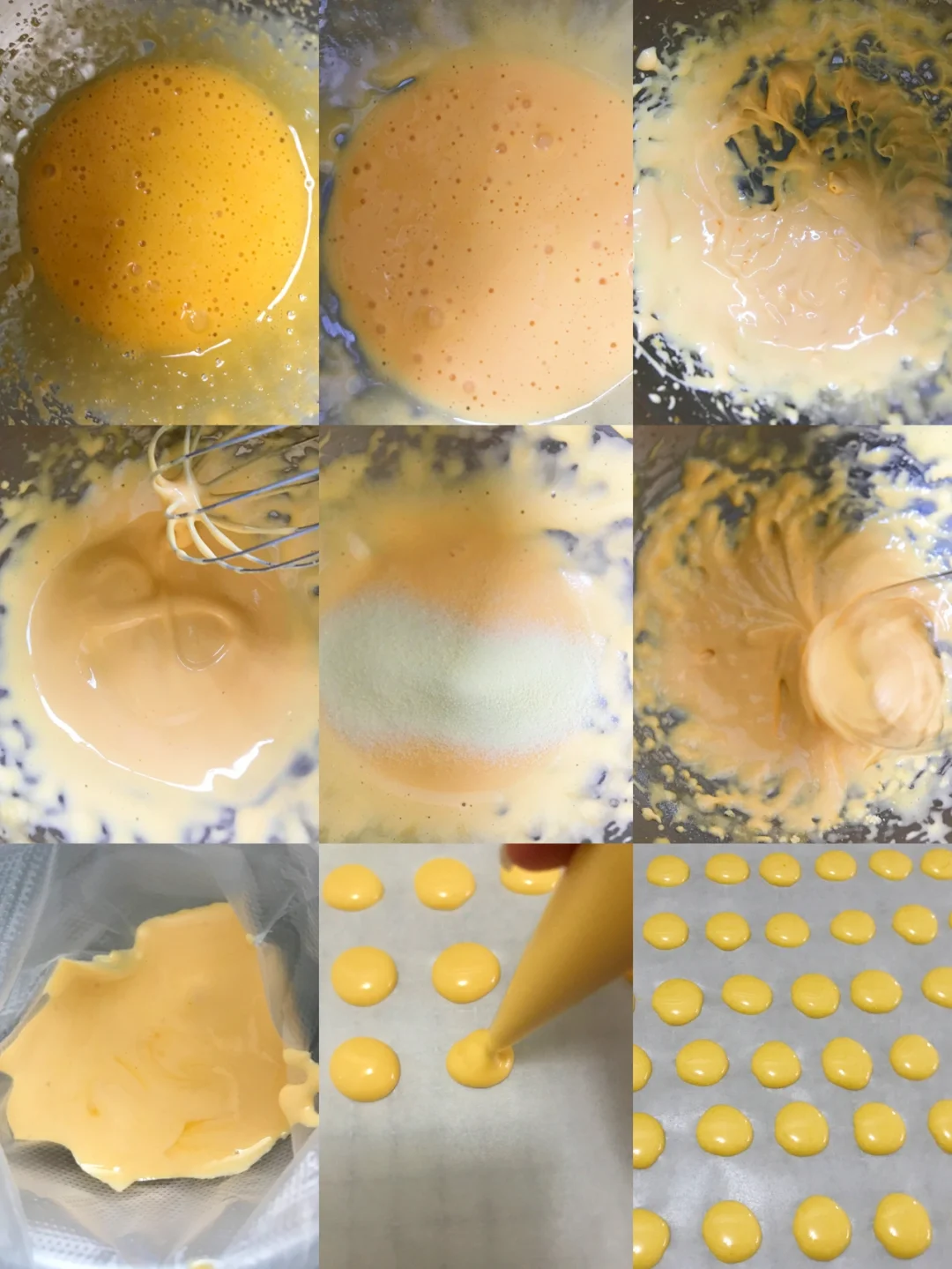 ㊙️一个蛋也可以打,但是2个蛋黄更容易打发,一定要用底部小一点的容器更容易打发