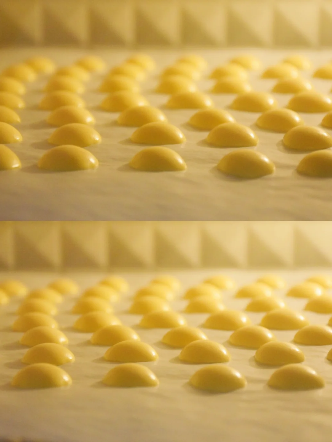 ㊙️溶豆都是低温烘烤,时间温度需要根据自己的烤箱做调整,烤好的溶豆可以很轻松从油纸上脱离,整体是硬的!