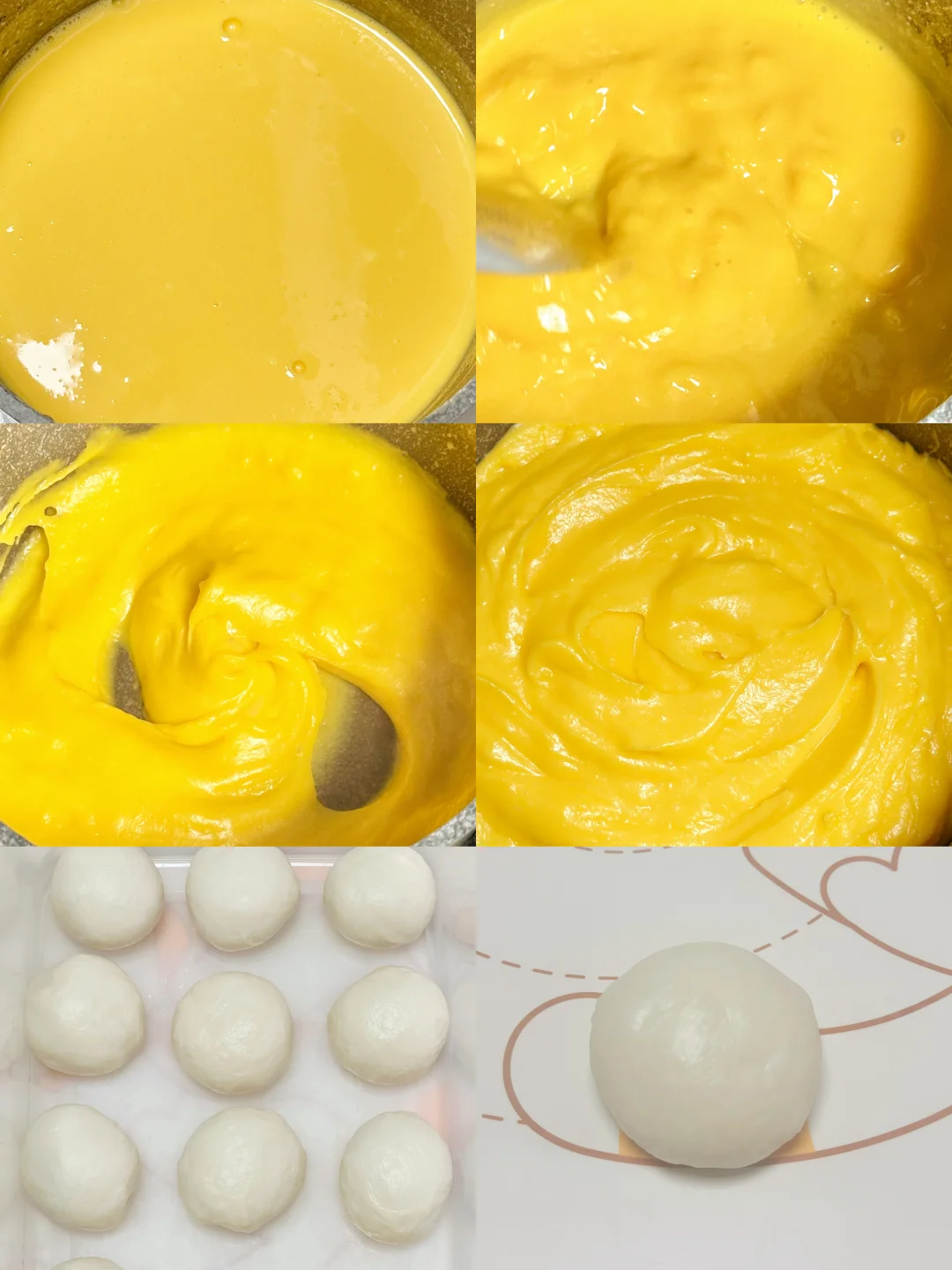 1️⃣提前准备馅料,将馅料配方里的所有食材混合均匀,放入不沾锅内小火加热,一边搅拌至浓稠状即可。晾凉冷藏备用。