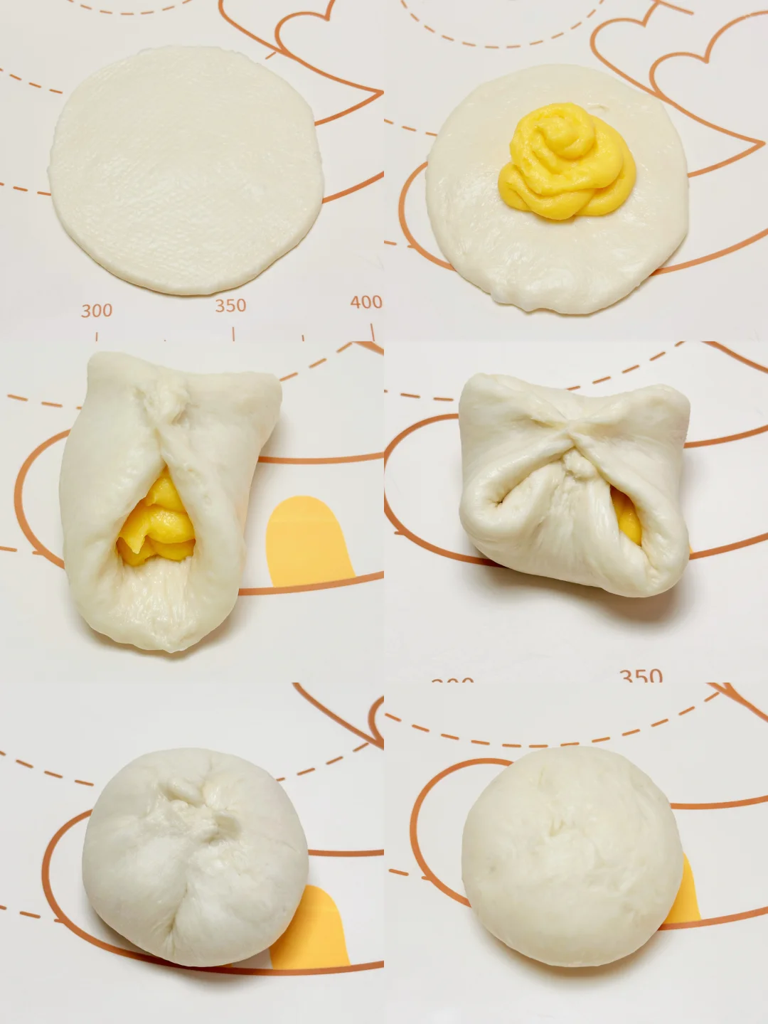 3️⃣将揉好的面团直接分成16个剂子,揉圆松弛20分钟。取一个松弛好的面团,光面朝上,压扁排气,擀成圆皮,包入适量馅料,收口捏紧。