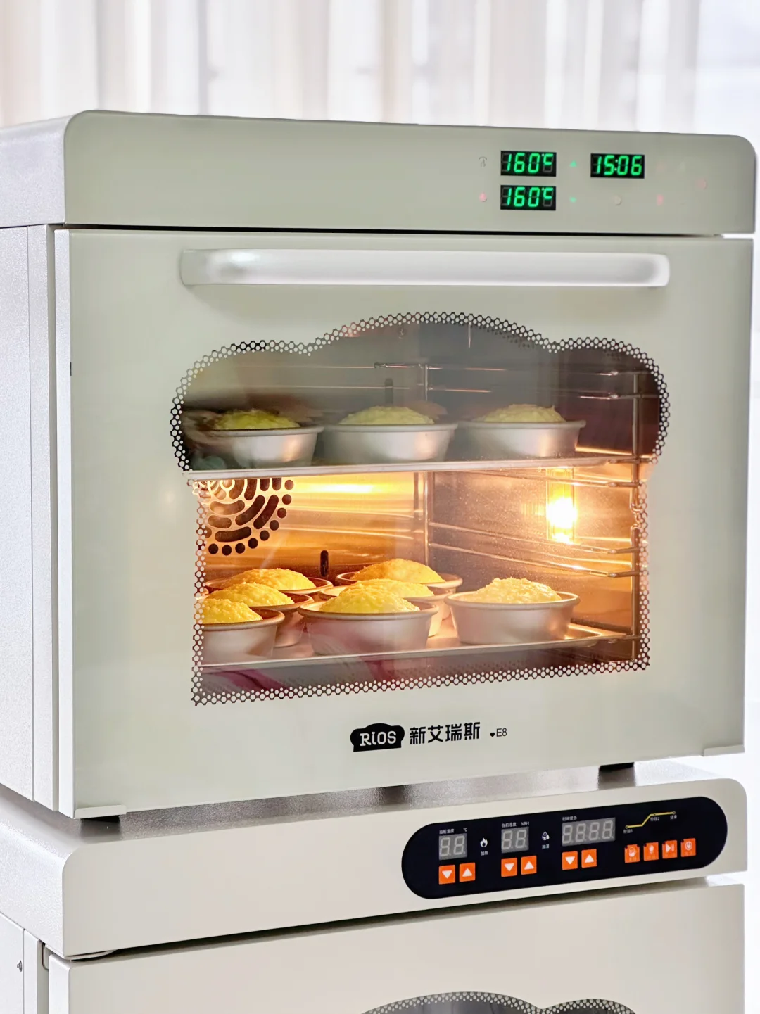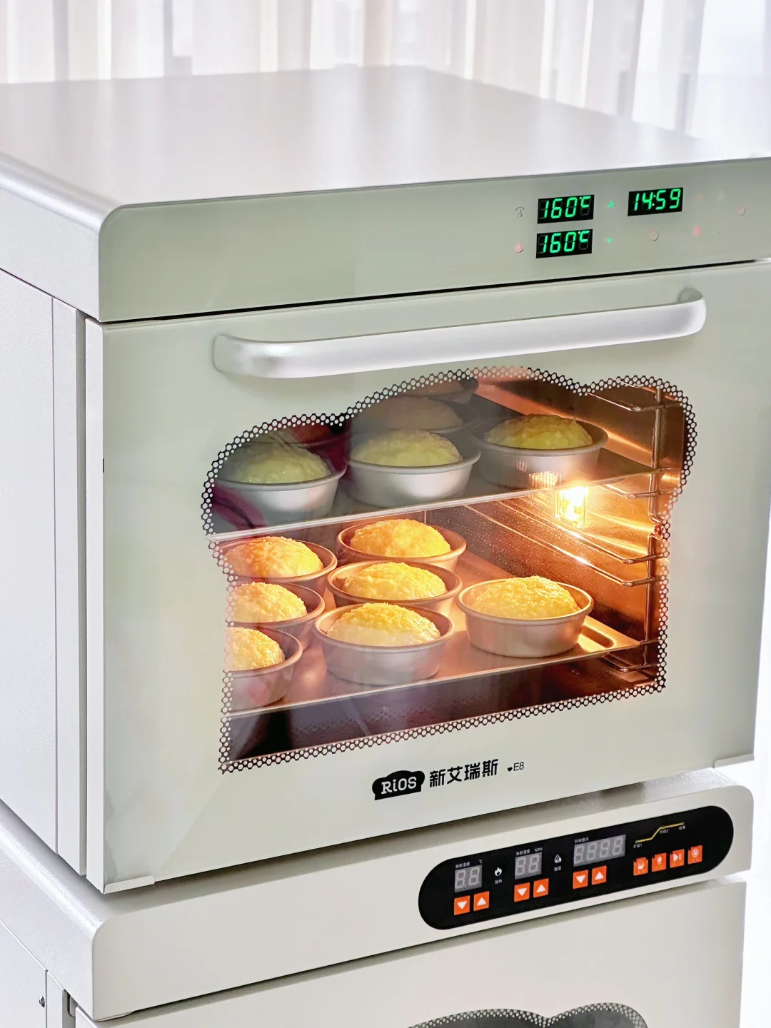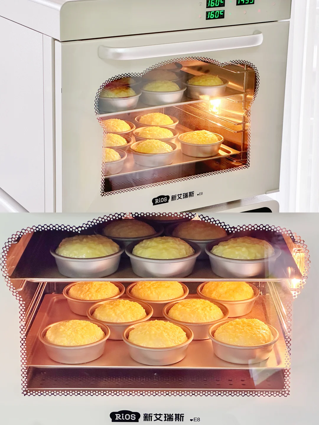6️⃣新艾瑞斯E8烤箱提前预热,放入预热好的烤箱,风炉模式160°C烘烤18分钟左右。