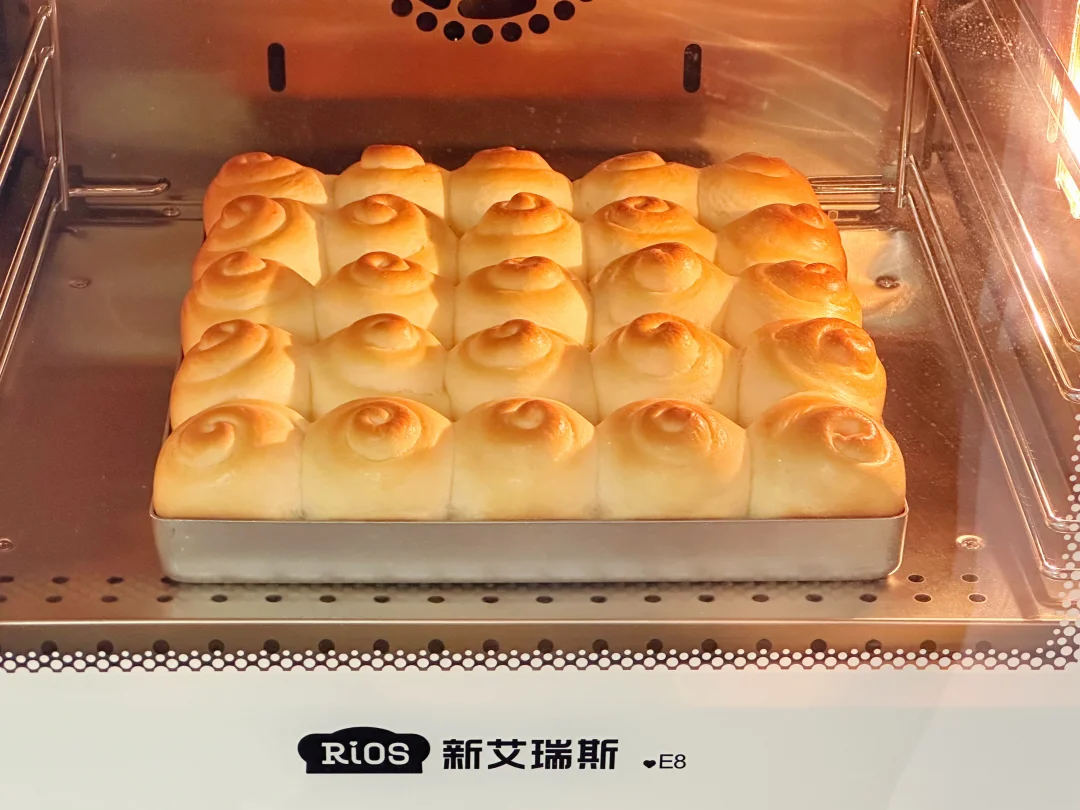 6⃣️发酵好的面团刷上蜂蜜水,新艾瑞斯E8烤箱提前预热,上火180°C下火215°C烤20分钟,上色满意后盖锡纸,出炉后及时震出热气,趁热再刷一层蜂蜜水!晾凉后密封保存~