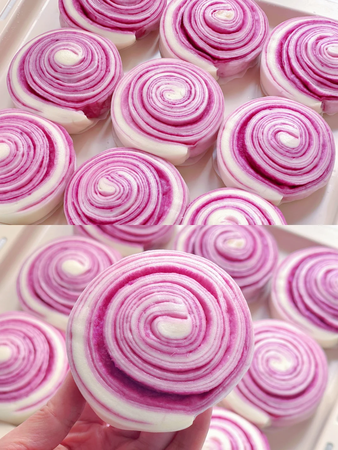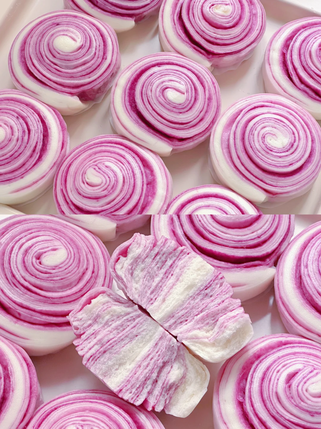 巨松软的千层馒头,紫薯的颜色也真是美呆了!做法不仅简单,层层叠叠每一口都是馅料,而且花青素满满~