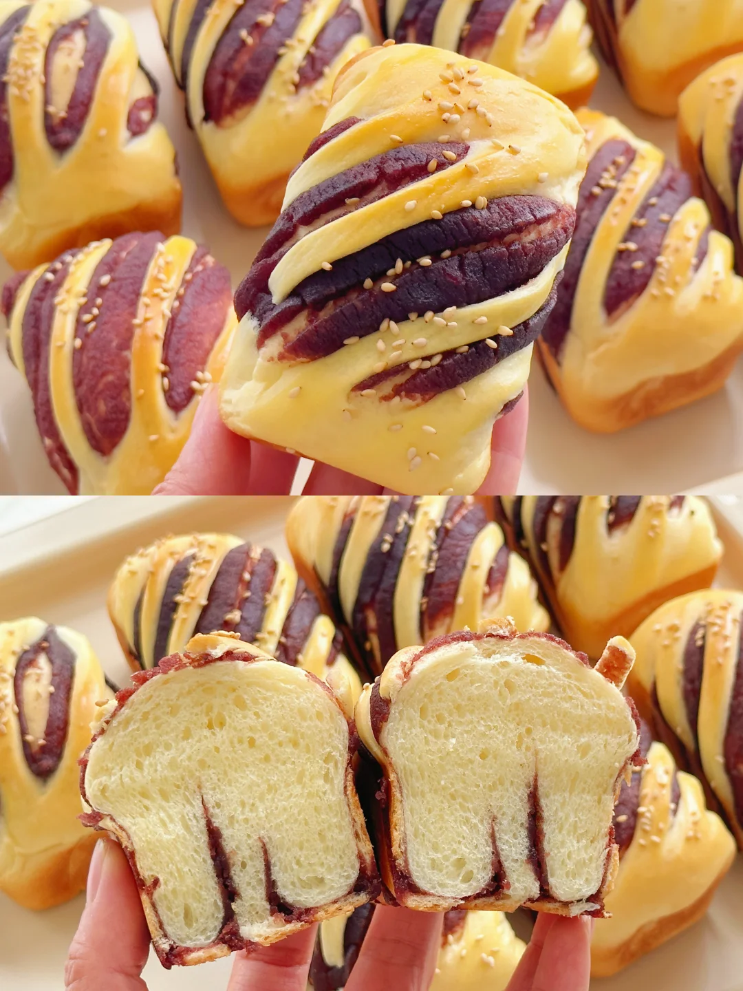 豆沙面包真的是超级经典啦!真的巨好吃~这款小吐司不仅可可爱爱,而且非常松软香甜,而且只需要一次性发酵。配方可做8个。