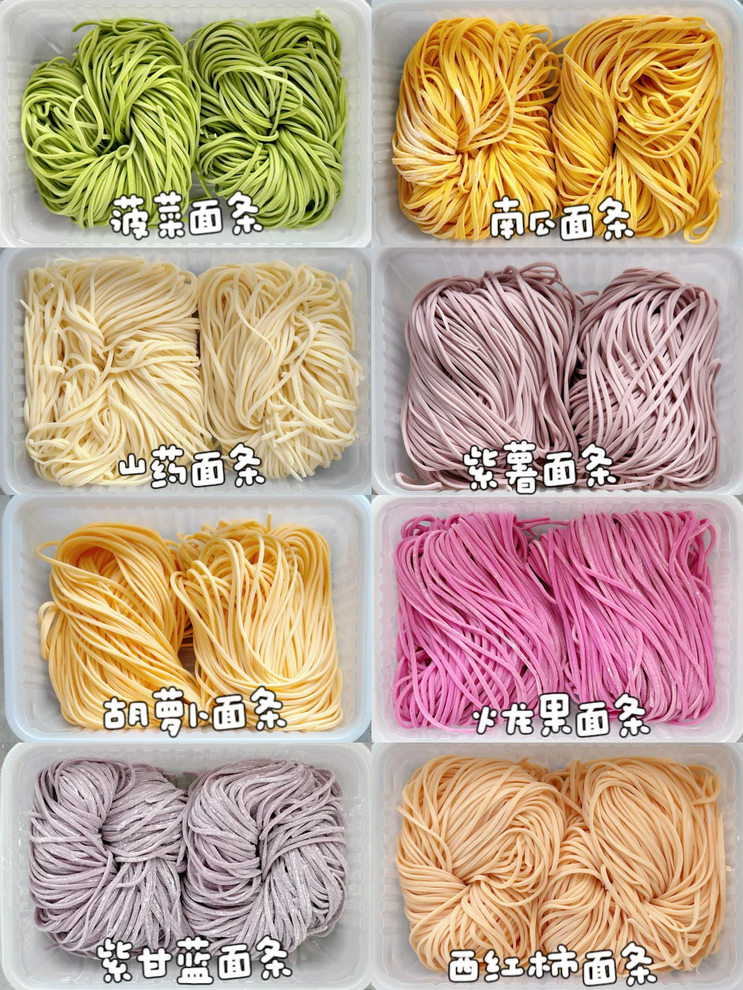 🟢菠菜鸡蛋面条:中筋面粉 320g,菠菜汁75g,鸡蛋1个