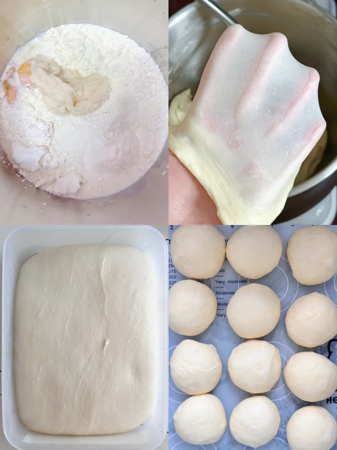 面团打出来有点粘手,整形的时候可以撒一点手粉,或者手上抹一点油。也可以减掉一些水量,但是新手一定要预留部分水量~