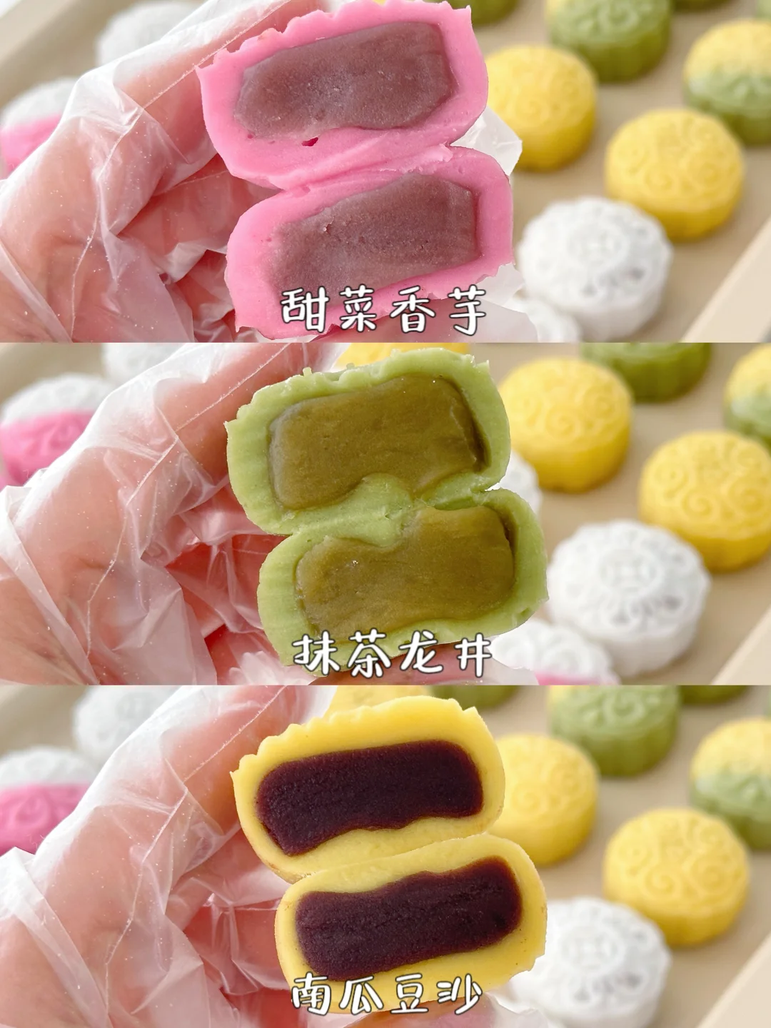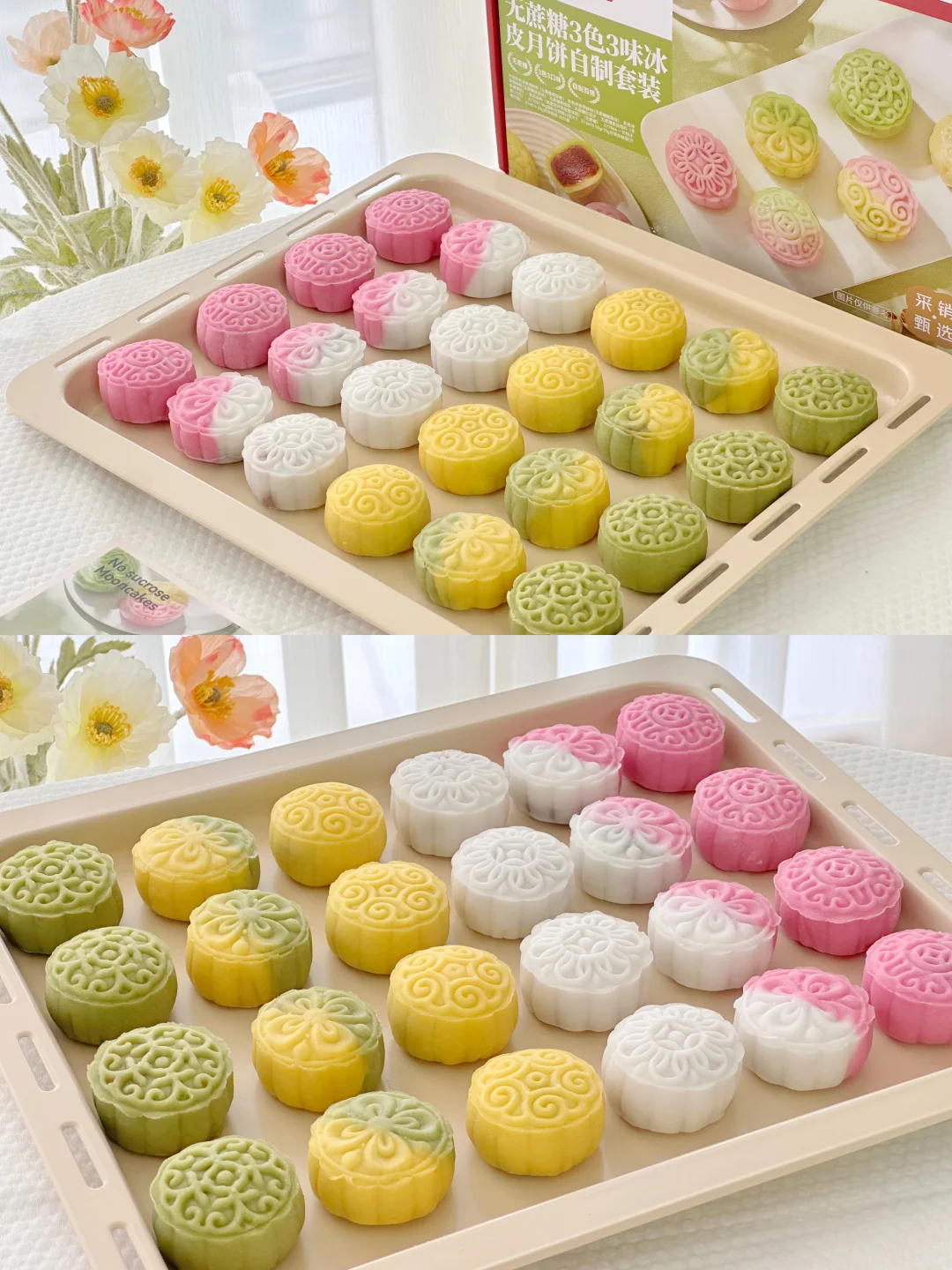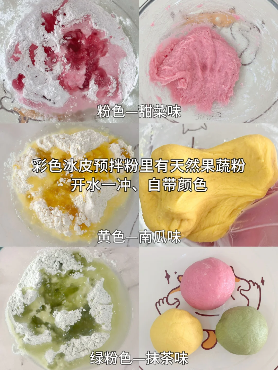 只需要添加沸水,加上这个自带颜色的冰皮粉就能做出好看又好吃的冰皮月饼~真的太赞啦!