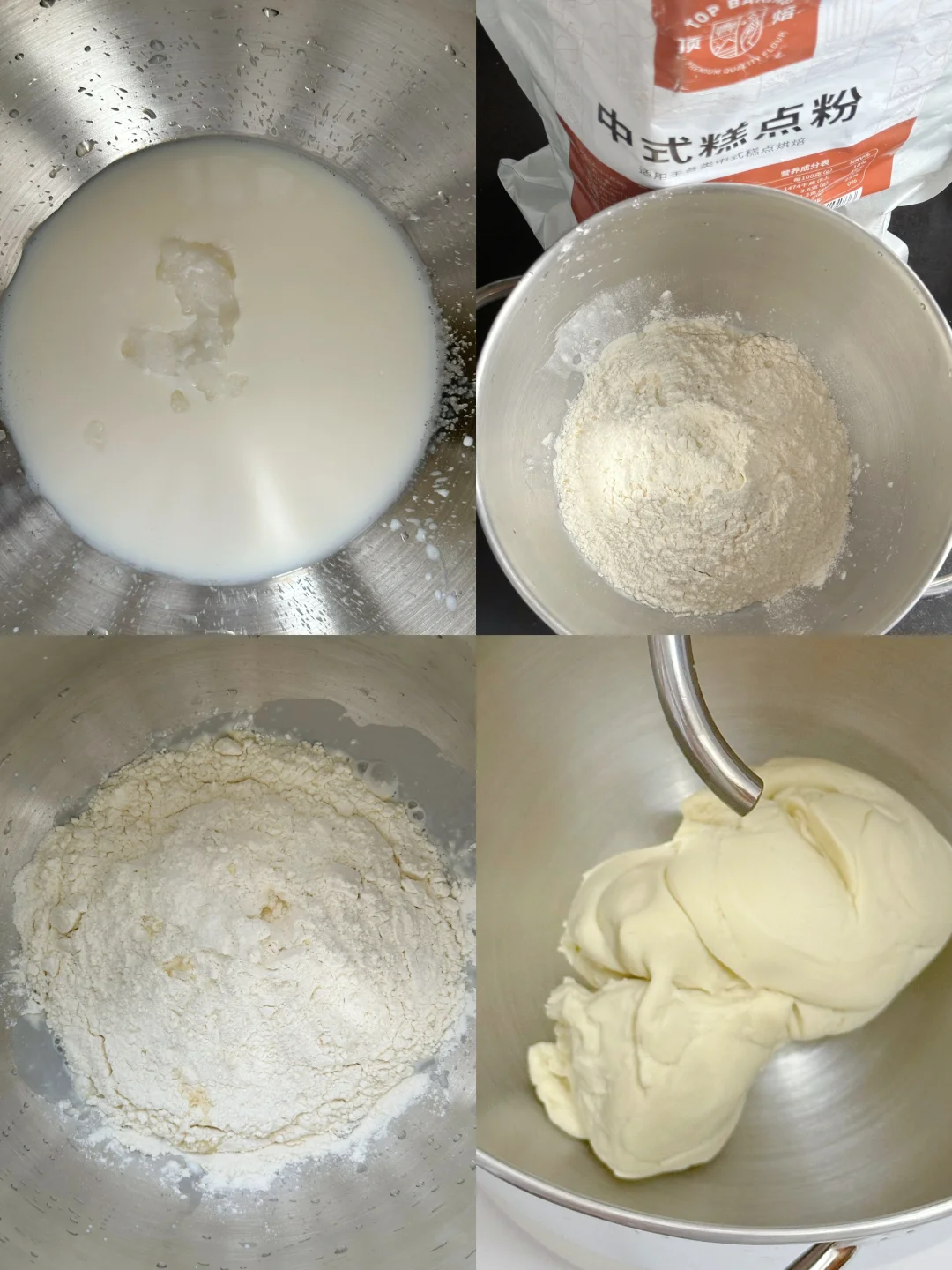 🌈配方:中筋面粉250g,牛奶125g,猪油10g (可不放),白砂糖10g (可不放),干酵母2g。