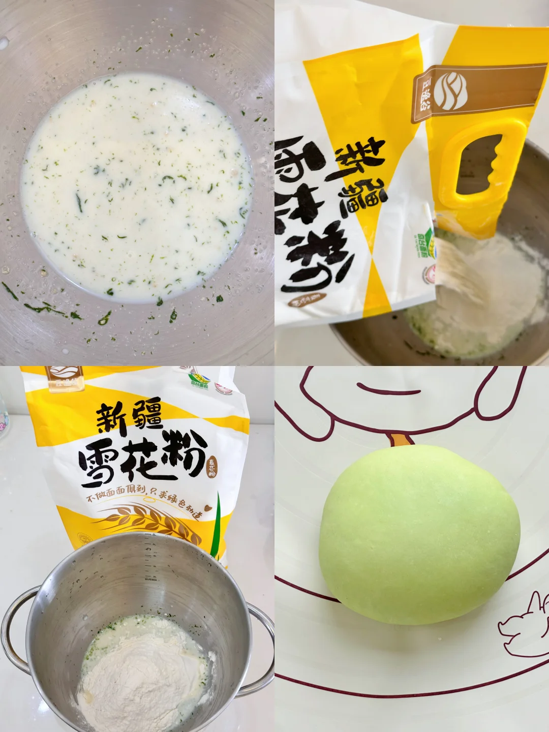 🔺分别将绿色面团和白色面团的材料用厨师机揉成光滑面团。