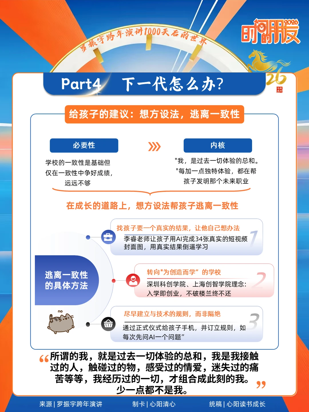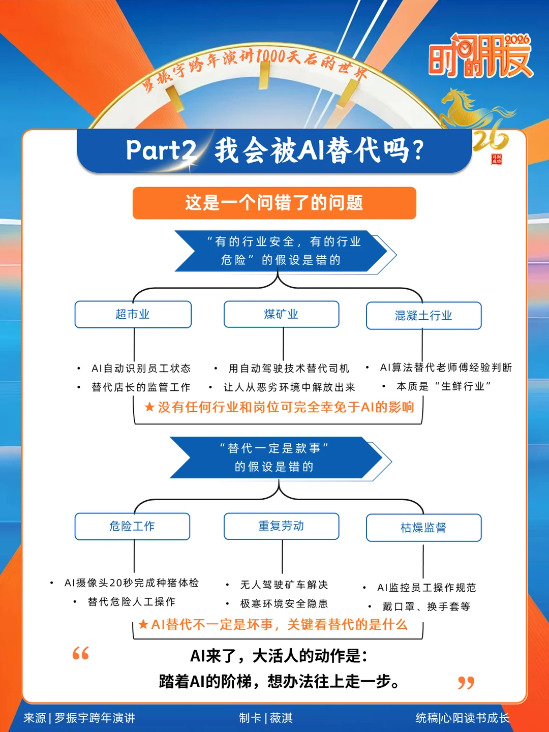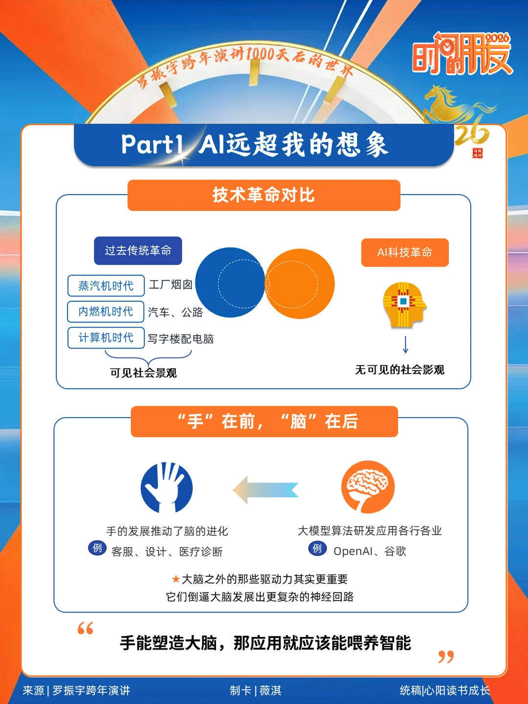 罗振宇一句话点醒我:“AI 不是往外排挤人,而是往上托举人”。那些担心孩子被替代的家长,其实都搞错了方向!未来最值钱的根本不是 “会做题”,而是 AI 学不会的三种能力:​ ✨ 能提出问题的创造力​ AI 擅长给标准答案,但永远不会主动质疑。演讲里举的海螺水泥老师傅例子太励志了 —— 裴军从搅拌工做到 AI 事业部助理,靠的就是用 AI 解决现场难题的创造力。现在我逼娃刷题时会加一句:“试试让 AI 验证,但先说出你的思路”。​ ✨ 与人链接的共情力​ 刷到个数据说 2035 年 “紫领” 岗位会超 3100 万,这类人既要懂业务又会用 AI,但更核心的是懂人心。上周让娃用 AI 做生日贺卡,我特意让他加了爷爷爱钓鱼的细节,比起 AI 生成的华丽句子,这份温度才是无可替代的。​ ✨ 指挥 AI 的协作力​ 别再禁孩子用 AI 了!罗振宇说未来的竞争是 “谁能让 AI 替自己干活”。我给娃试了个小方法:让他用 AI 查恐龙资料,但必须自己整理成故事讲给我听。现在他已经会说 “AI 你把这段改得像动画片台词”,这不就是最棒的思维训练吗?​ 最戳我的是演讲里那句:“没有安全的路,只有会造路的人”。整理了份演讲核心 PPT,把 “紫领能力培养清单” 和真实案例都标出来了,尤其适合像我这样的焦虑型家长。​ AI 时代的育儿,拼的从来不是孩子多优秀,而是我们能不能放下 “标准答案执念”。毕竟机器能学会知识,但学不会热爱与成长啊❤