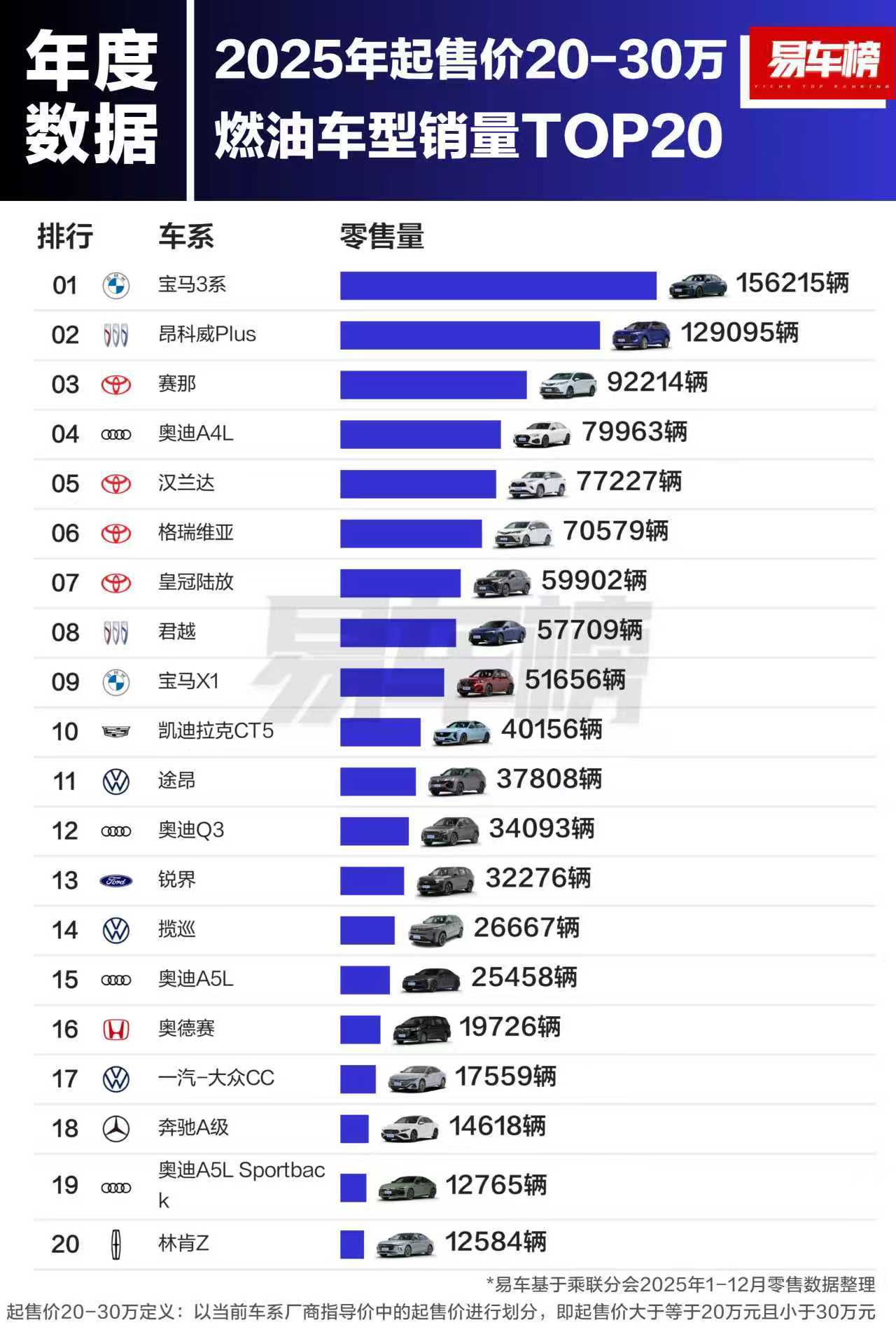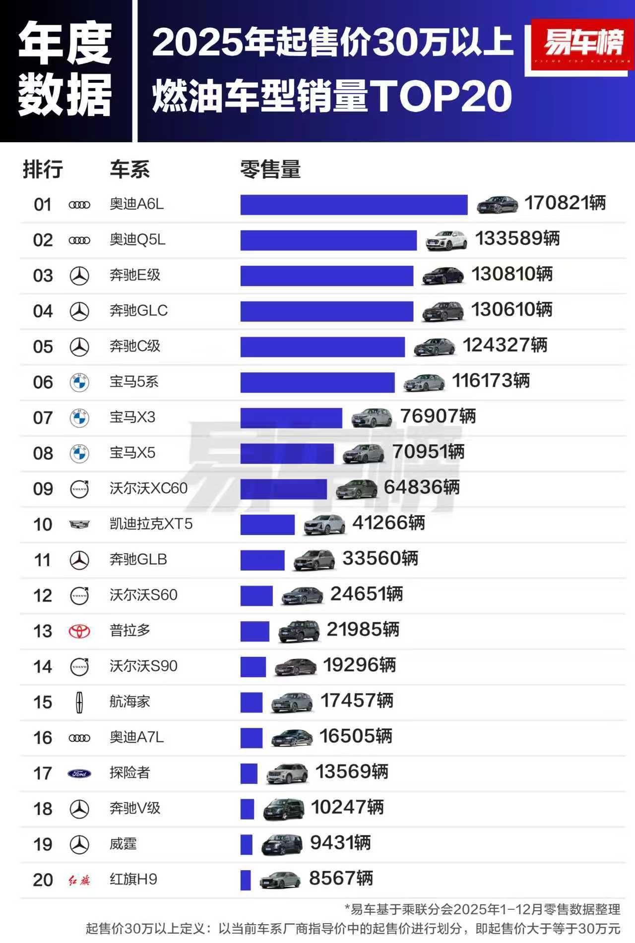 看下2025年燃油车分价格段的销量吧,我觉得有这么几个基本结论:~10万以下是燃油车走量核心,合资家轿(轩逸、朗逸)与自主SUV(博越L、瑞虎8)平分秋色,主打家用刚需,是销量基本盘。总体上经济型燃油车需求稳定,但正面临电动车加速渗透的竞争压力。~10-20万竞争最激烈,合资轿车(速腾、帕萨特)仍保持优势,自主SUV(星越L、长安CS75PLUS)靠高性价比快速突围。~30万以上高端市场被德系垄断,奥迪A6L、奔驰E级等德系豪华车型占据绝对主导,自主豪华(红旗H9)仅初步突破,份额有限。豪华燃油车在中高端市场仍受青睐。~燃油车仍有稳固市场,不同价位分层清晰,家用、升级、高端需求明确,并未被新能源完全替代,仍是市场重要组成部分,但增长空间有限。~自主燃油车呈现 “低端强、高端弱” 格局,中低端(10-20万及以下)表现强劲,但高端市场仍依赖合资 / 豪华品牌,品牌向上任重道远。大家觉得对不对?大v聊车