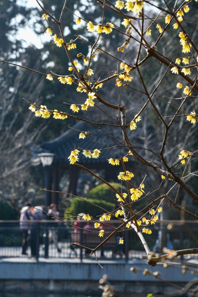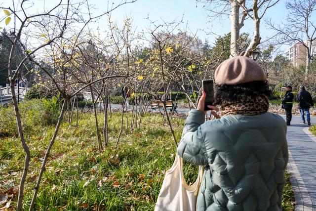 近日,申城气温显著下降,冬日氛围愈发浓厚。在静安区的闸北公园内,一缕缕清芬悄然浮动,园中的蜡梅已渐入盛放之境,在冬日枝头静静绽放,吸引众多市民循香前来观赏。