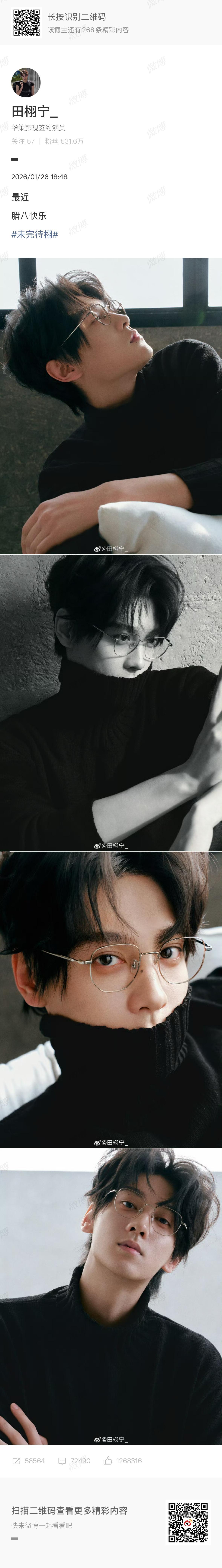 田栩宁腊八节晒4宫格照田栩宁腊八节晒照营业田栩宁腊八节晒4宫格照营业啦黑色紧身衣+眼镜,高干精英味儿有了田栩宁腊八节4宫格营业照田栩宁