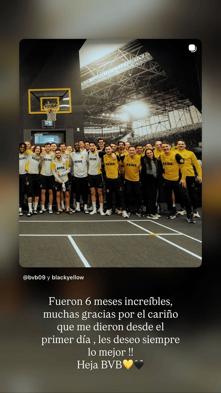 安塞尔米诺通过社媒晒出多特全队合照,并配文:“这是不可思议的6个月,非常感谢你们从一开始就给予我的爱,祝你们一切顺利!加油,多特蒙德!”