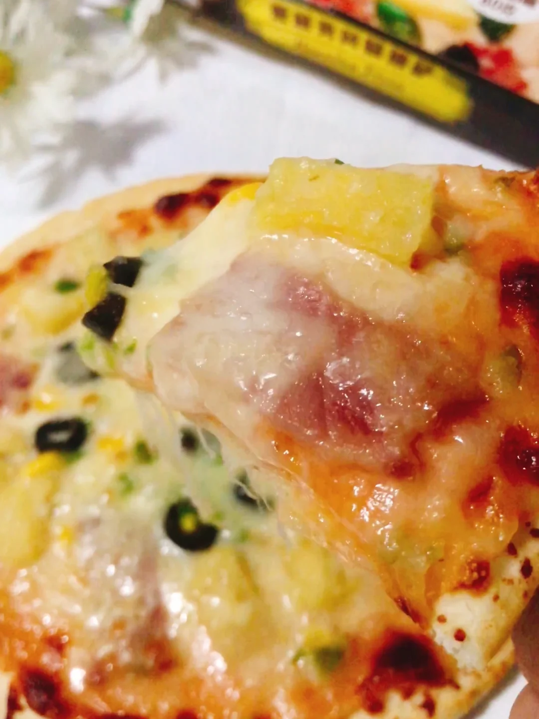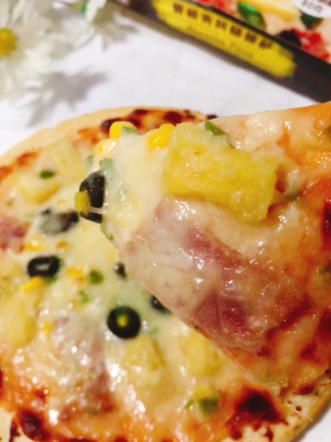 第一次尝试夏威夷风情披萨 水果味的披萨真是第一次吃~ 一直比较喜欢吃肉的我这次选择了夏威夷风情披萨~ 因为家里有个小盆友 所以选择了派多芝夏威夷风情披萨🍕 一款有水果有培根的披萨~ 口感很不错~ 菠萝也是超多的~ 吃起来酸酸甜甜一点也不觉得腻~ 💯原自进口的奶酪烤出来超拉丝 而且芝士也不会特别的咸~ 真是太和我的胃口了! 这款披萨真的是爱了~