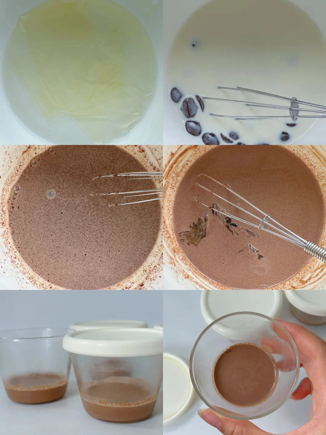 🐾巧克力奶冻:淡奶油35g,牛奶35g,巧克力20g,吉利丁片3g