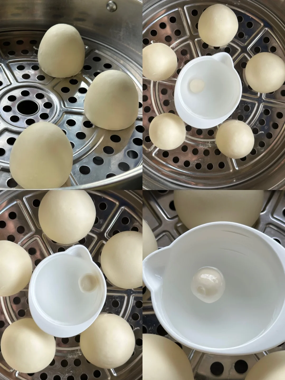 🔺揉好的馒头胚子放入锅中发酵,发酵完成冷水上锅蒸12分钟焖2分钟即可。