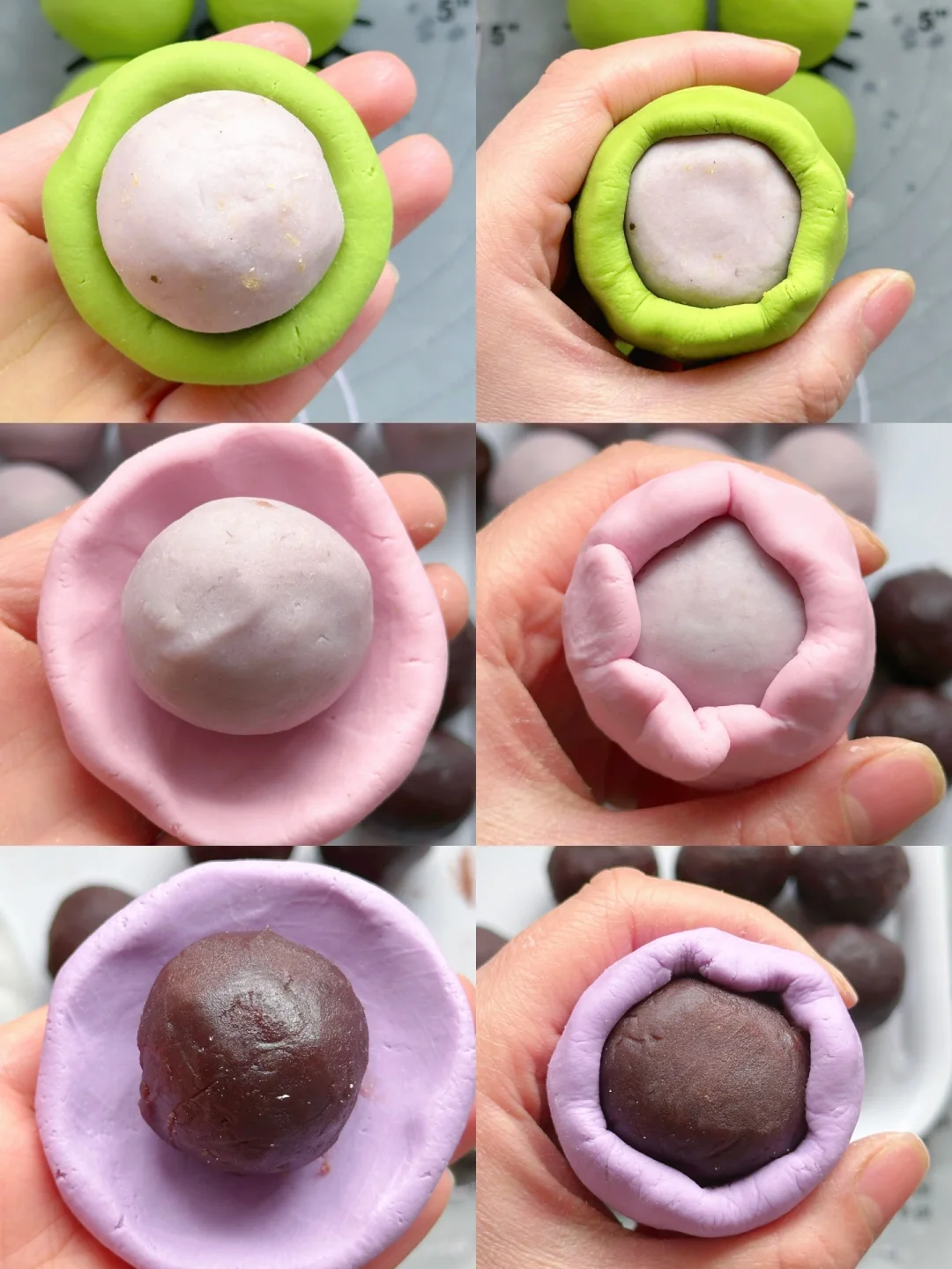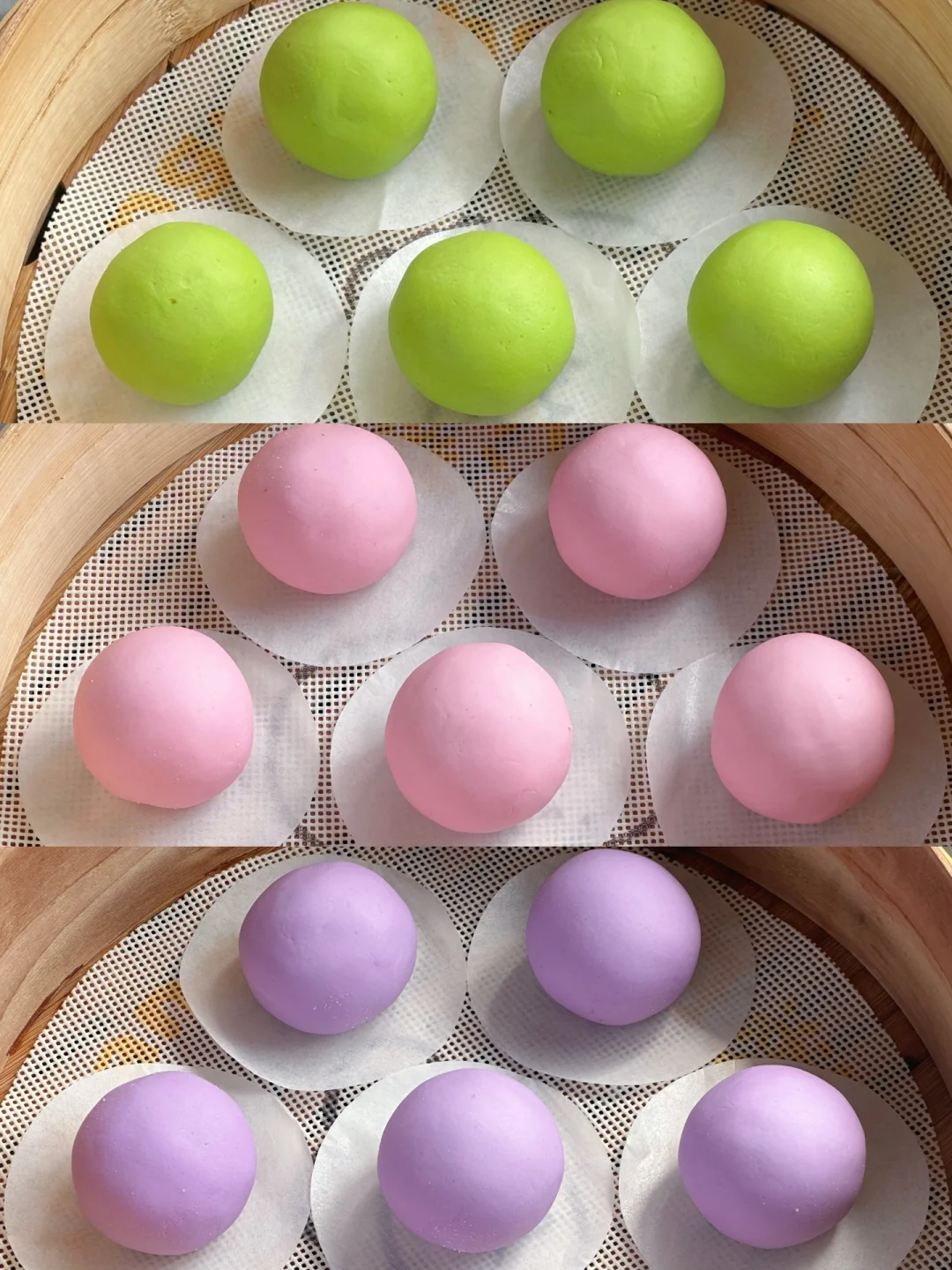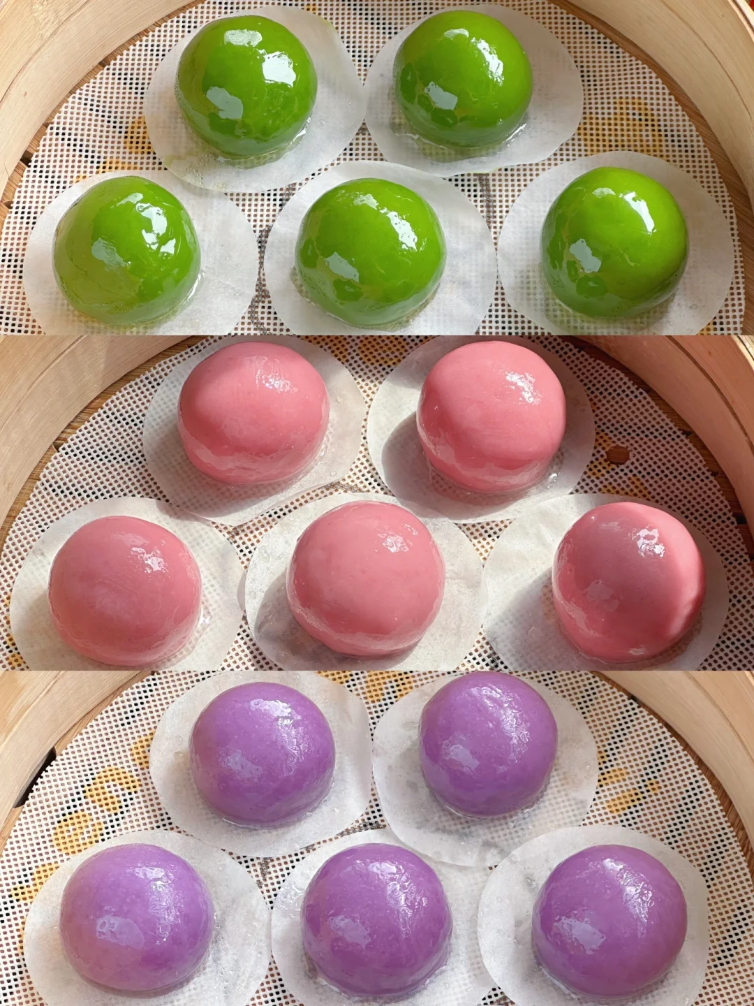 这三种颜色的青团真的都太好看啦!粉色还有股淡淡的草莓香味!紫色也是超级仙~