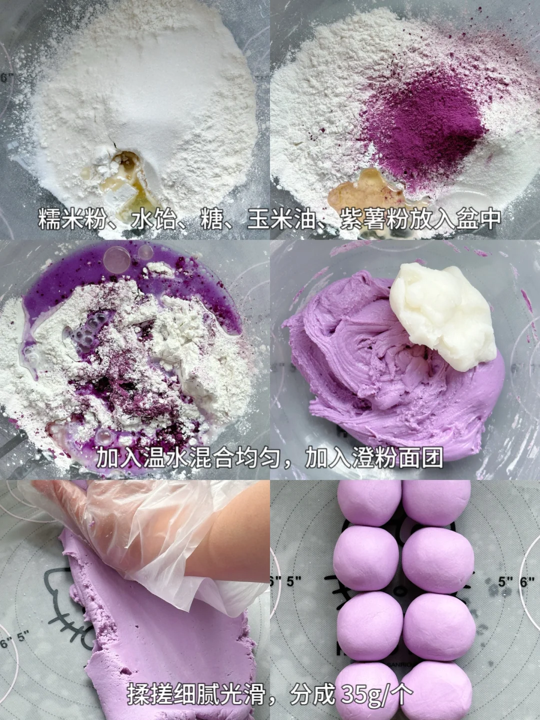 ▪️主面团部分:糯米粉100g,紫薯粉2g,温水90g,水饴8g,糖5g,玉米油5g