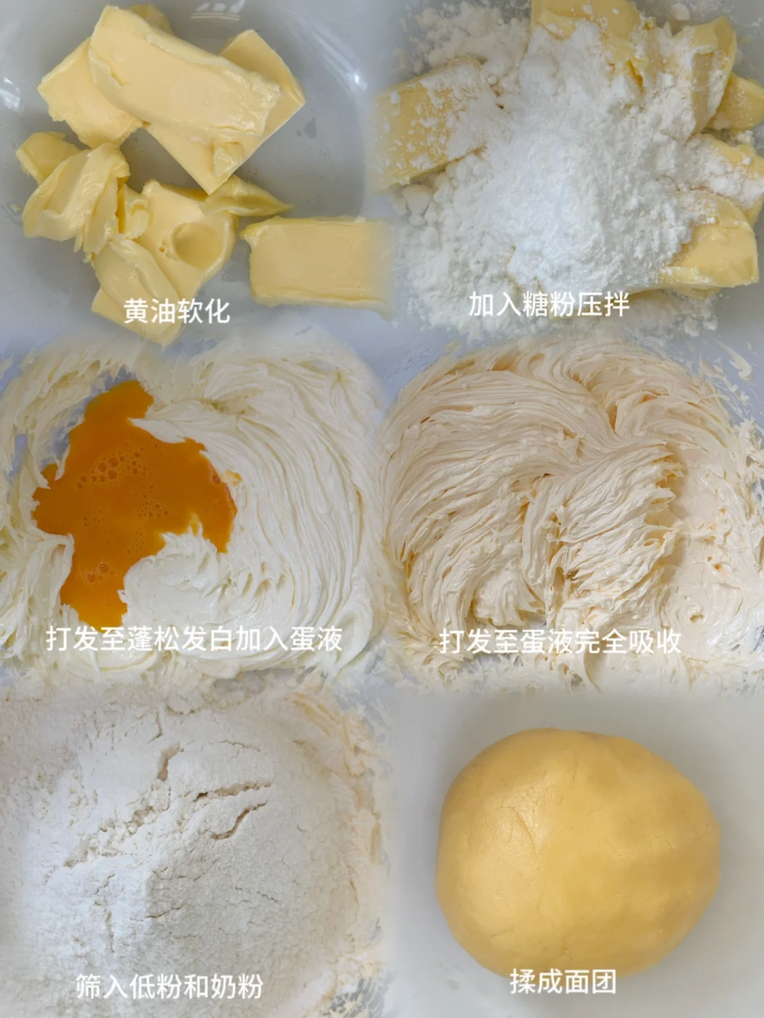 低筋面粉240g,黄油120g,奶粉10g,糖粉45g,全蛋液50g。肉松180g,沙拉酱75g,白芝麻少许。