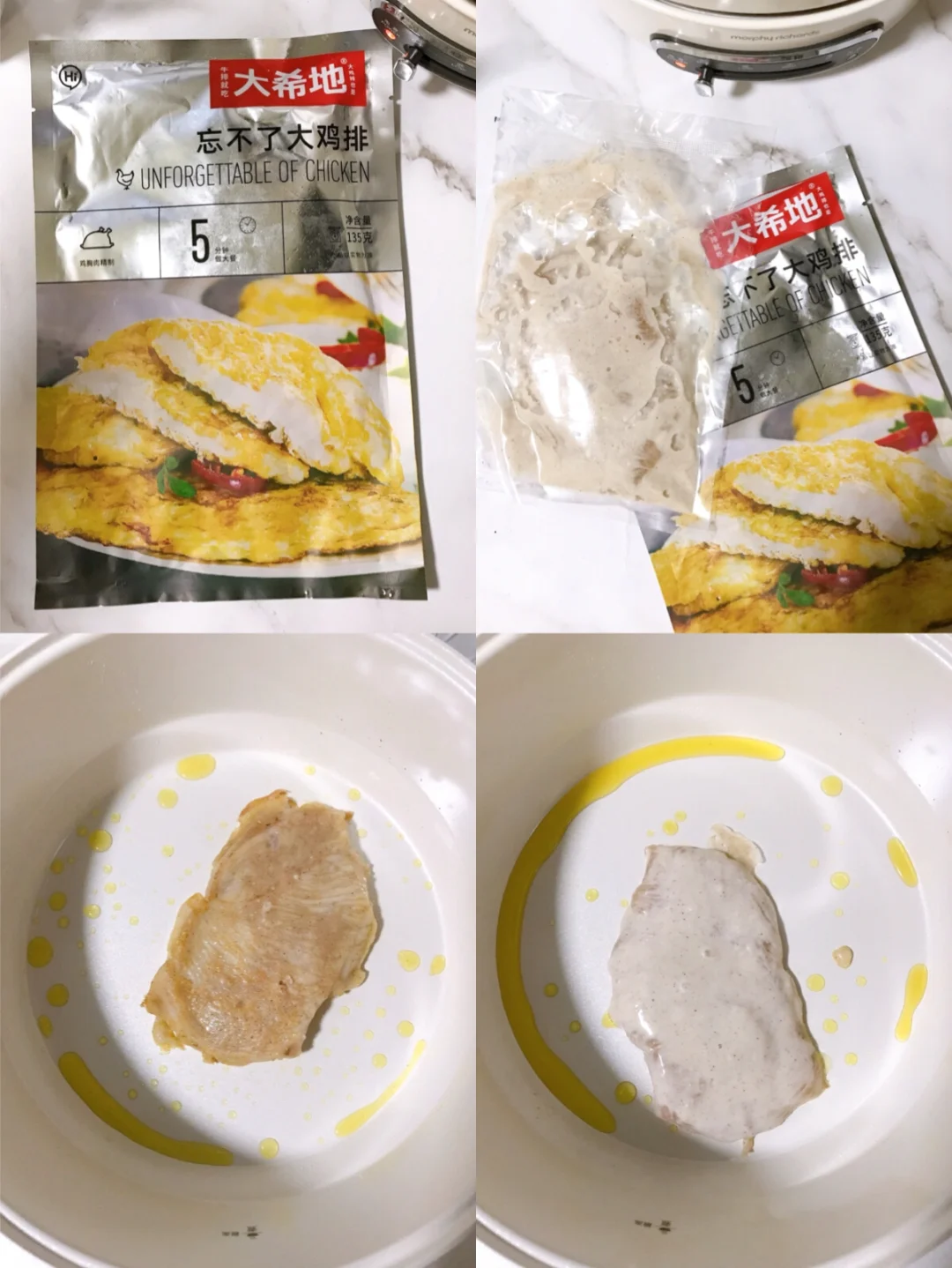 鸡排一直都是在外面买炸好的吃,感觉肉质超嫩的!自己买来鸡胸肉不管怎么做总是很柴~这次入手了大希地的忘不了鸡排~口感真是超出我的预期,真的是超好吃!鲜嫩多汁~ 这个鸡排已经是腌制好的,表面有一层面浆,煎出来表面就是那种脆脆的感觉,煎的时候都多怕它会变柴了!结果完全不会~口感超好!我家小盆友不爱吃肉的也要自己拿着吃了~ 做个早餐也只需要5分钟了! 这个真的值得入手!