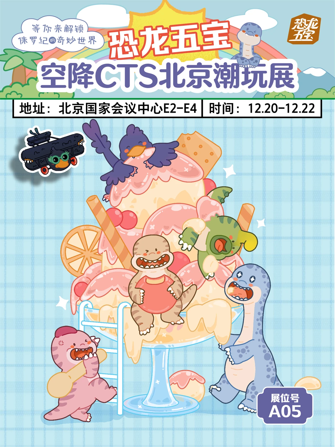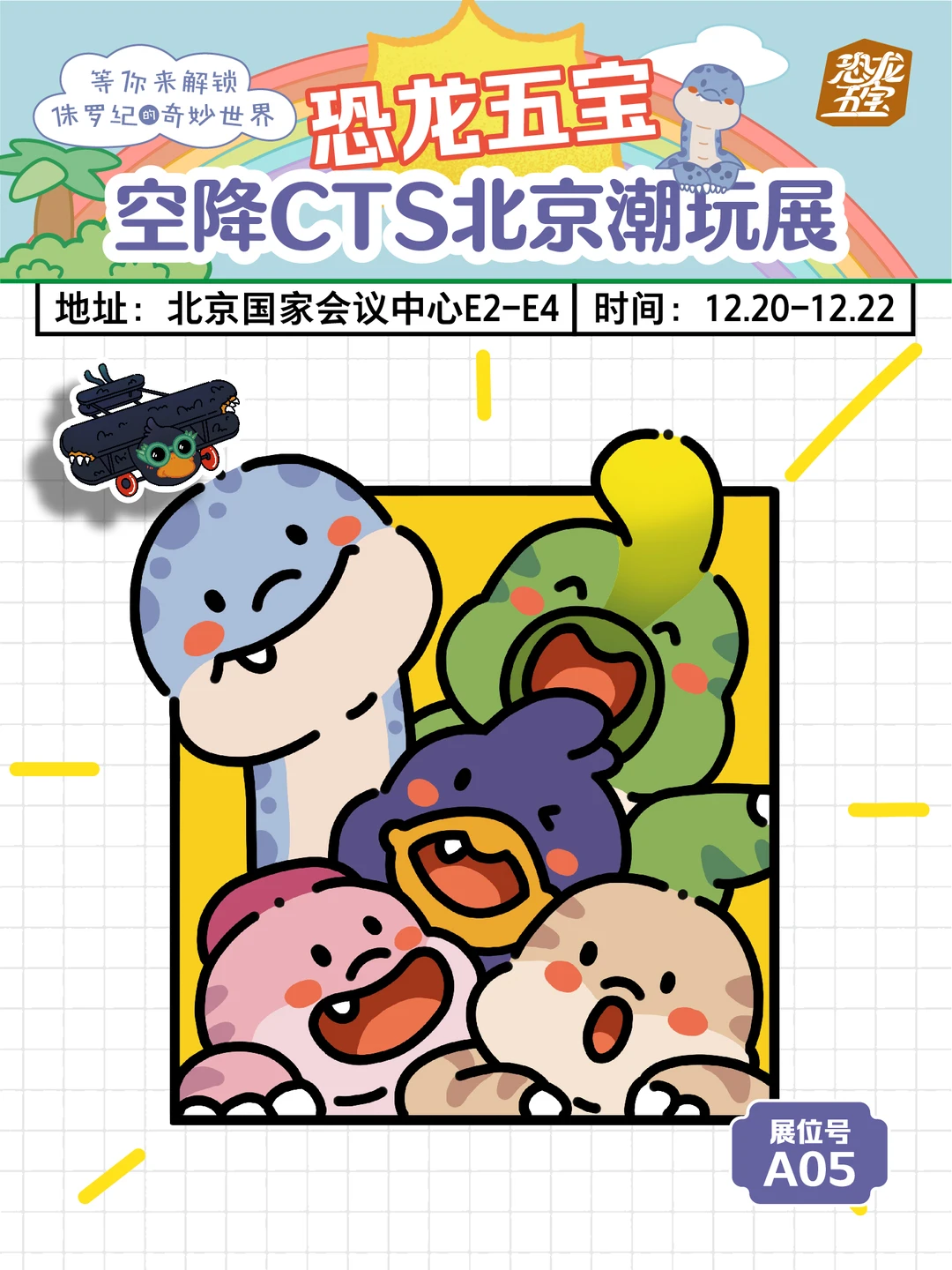 像被磁铁吸住了一样的贴贴小鸡 家人们,CTS潮玩展来北京啦!我们的恐龙五宝IP全员到齐,等你来打卡!📸 . 🦖【不一样的潮玩体验】 忘掉那些千篇一律的展览吧,带科普元素的IP你见过吗,我们的恐龙五宝将带你穿越回神秘的侏罗纪时代。 . 合川马门溪龙、许氏禄丰龙、棘鼻青岛龙、将军庙单脊龙、顾氏小盗龙,五大恐龙齐聚一堂,IP界的新星我爱了!🌟 . 🎨【互动体验】 这次不仅有我们恐龙五宝的展示,还有丰富的互动体验环节,等你来挑战! . ✨【打卡活动】 记得直奔我们的恐龙五宝展区,拍照打卡并分享还有🎁等着你~ . 📸【打卡指南】 地点:北京国家会议中心E2-E4 时间:12月20日-12月22日 展会现场设置了多个打卡点,记得带上你的相机,快来拍出属于自己的大片!📸 . 📅【时间有限】 记住,这场潮玩展只有三天!错过了可能就要等到下一个侏罗纪了😭所以,赶紧拉上你的小伙伴,一起来打卡吧!👫