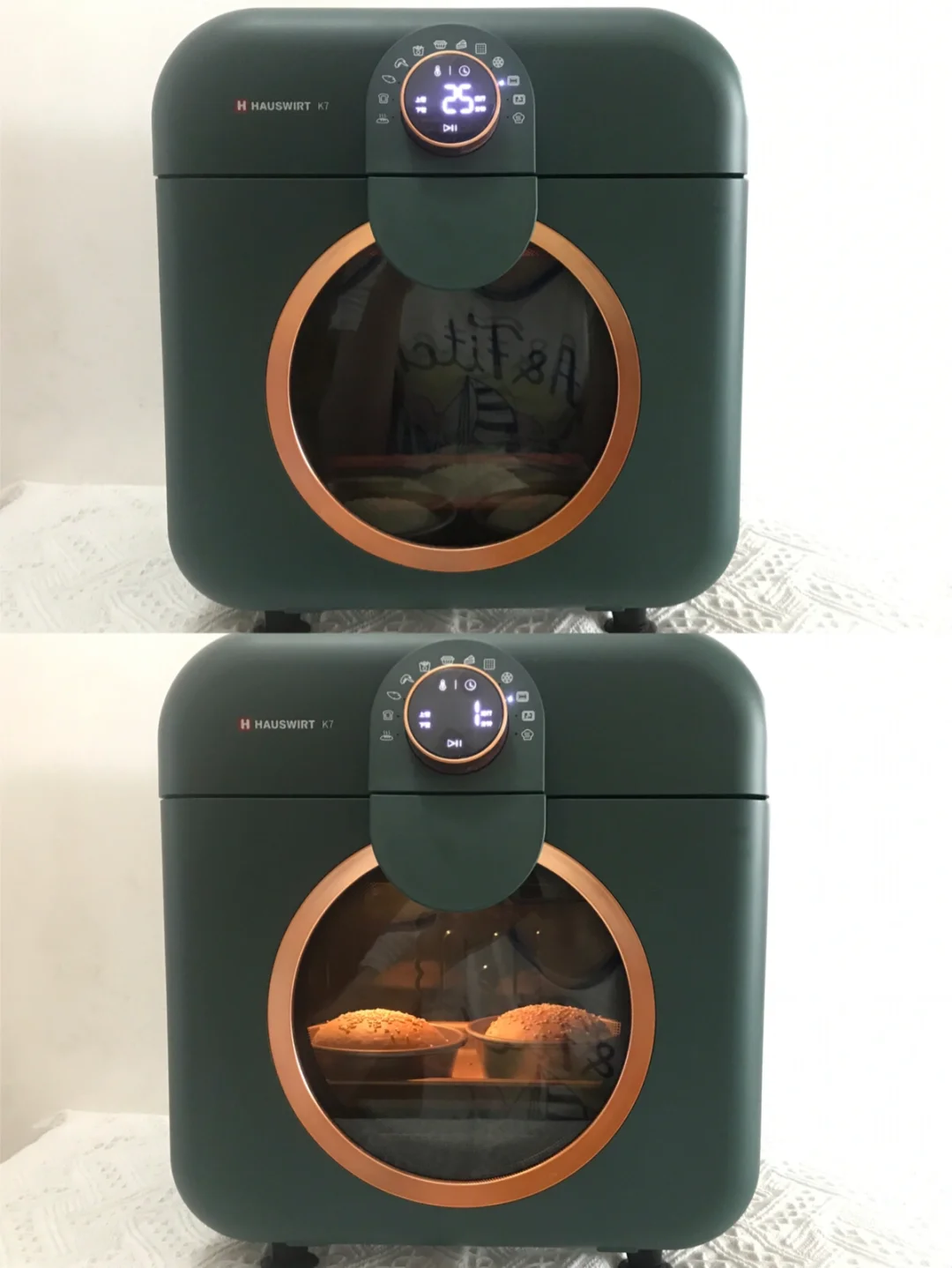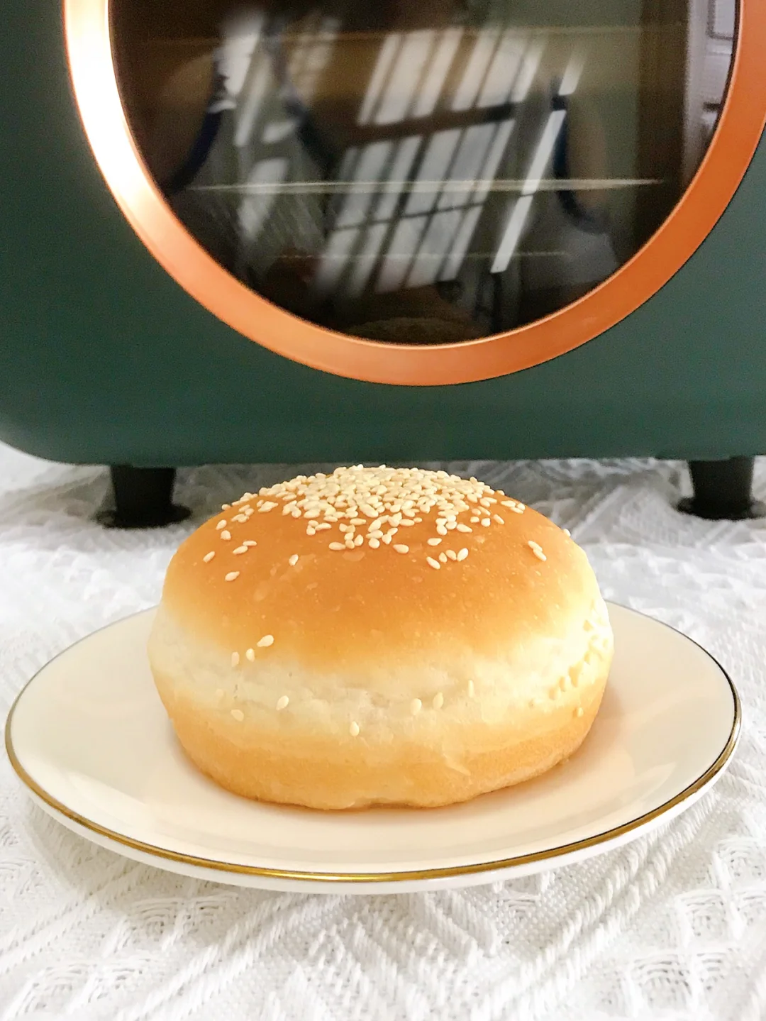 配方可以做5-6个汉堡胚,我翻倍做了,烤了一个白吐司,5个汉堡胚,用海氏K7食光机烤了两个,感觉上色特别好看!比较均匀~小烤箱温度上升也是很快的!