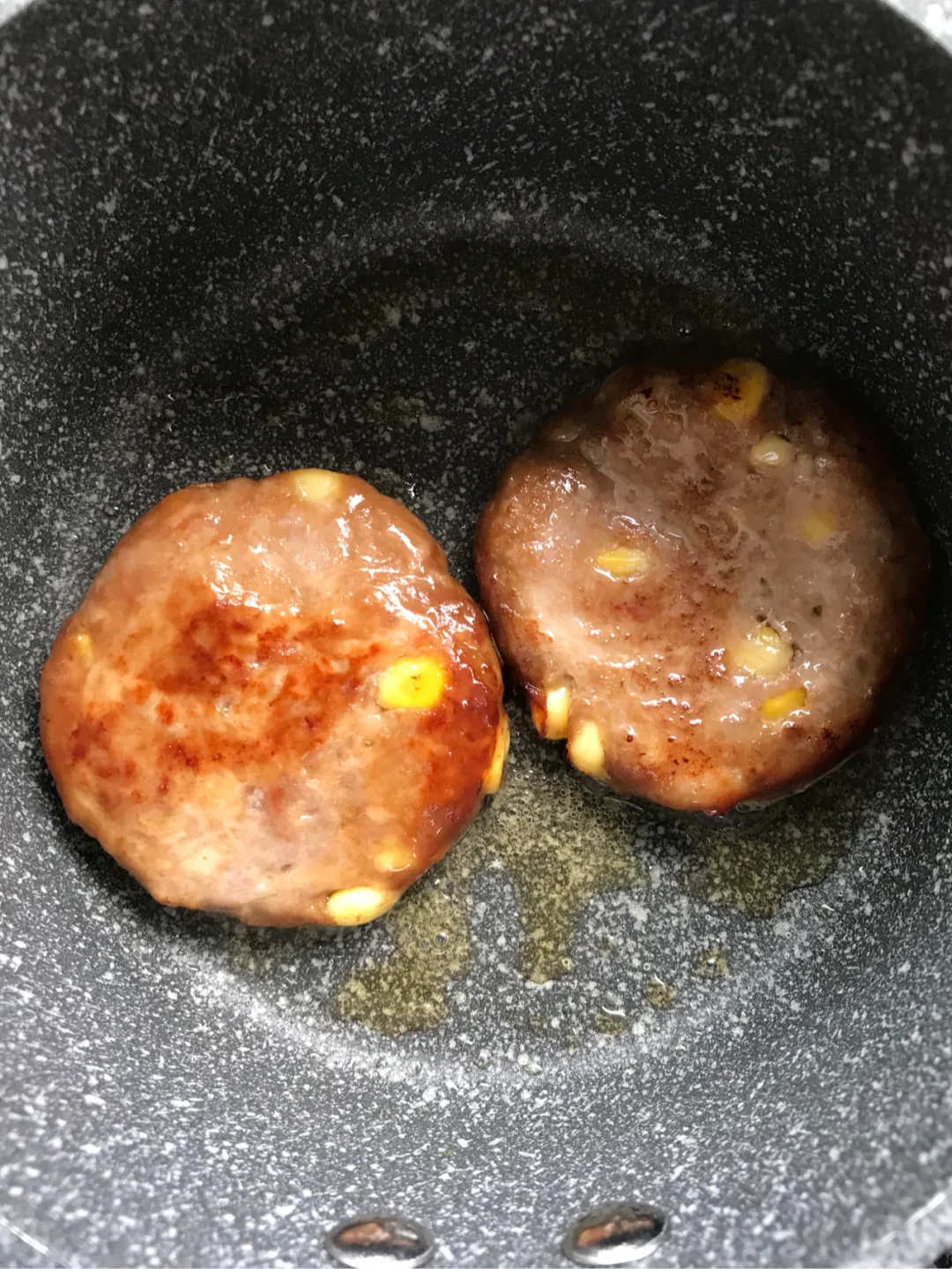 之前给他灌了点脆皮肠,剩了一些,想着可以做成汉堡,于是就给他做成了猪肉饼放冰箱冷冻。既不吃蛋又不能加奶……就连汉堡胚也是难着我了,网上各种搜寻……最后用了啊呜老师的白吐司配方,当然我改了一些,连奶粉都没放!