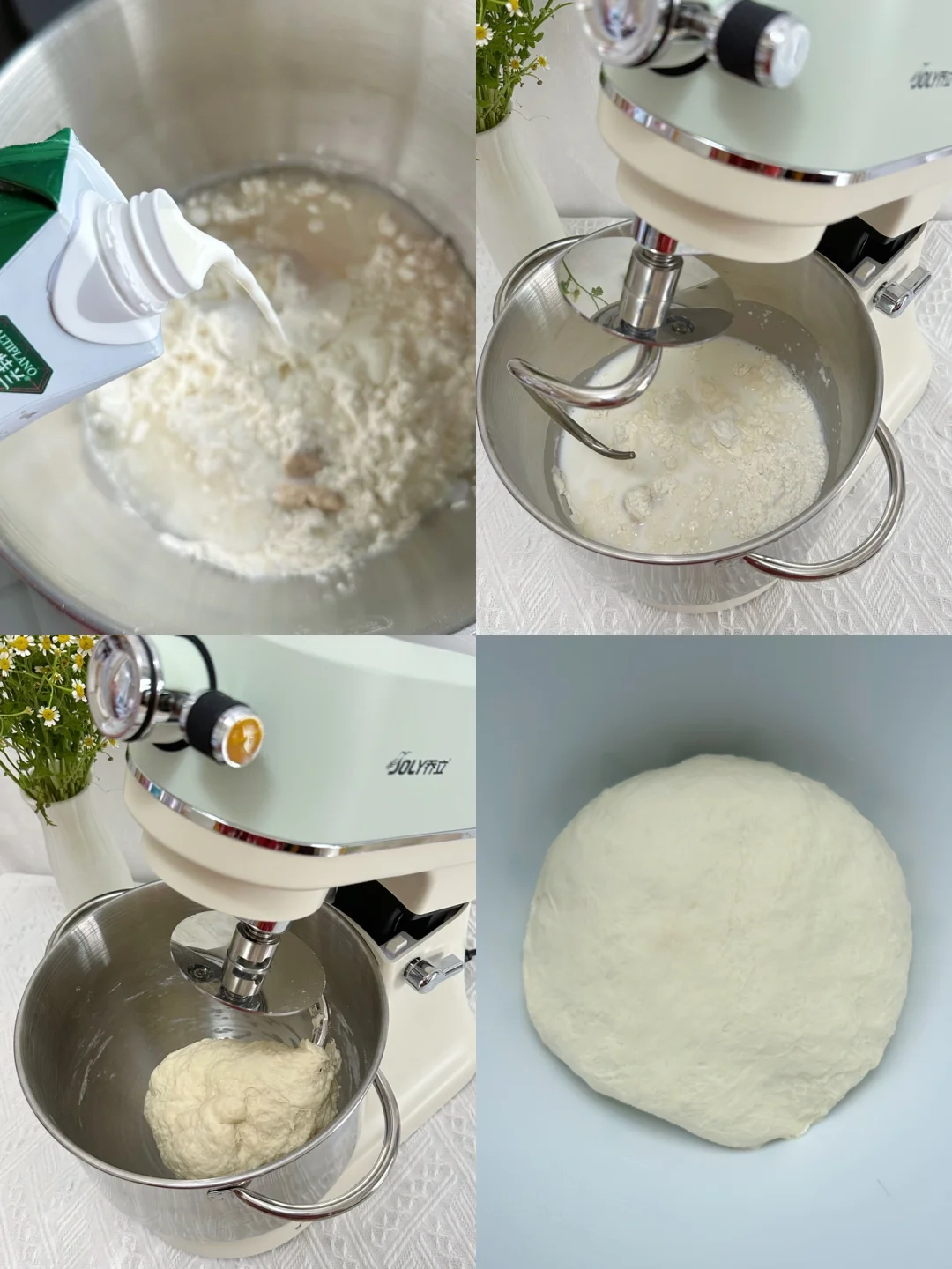【中种面团】高筋面粉500g,牛奶100g,水225g,鲜酵母10g