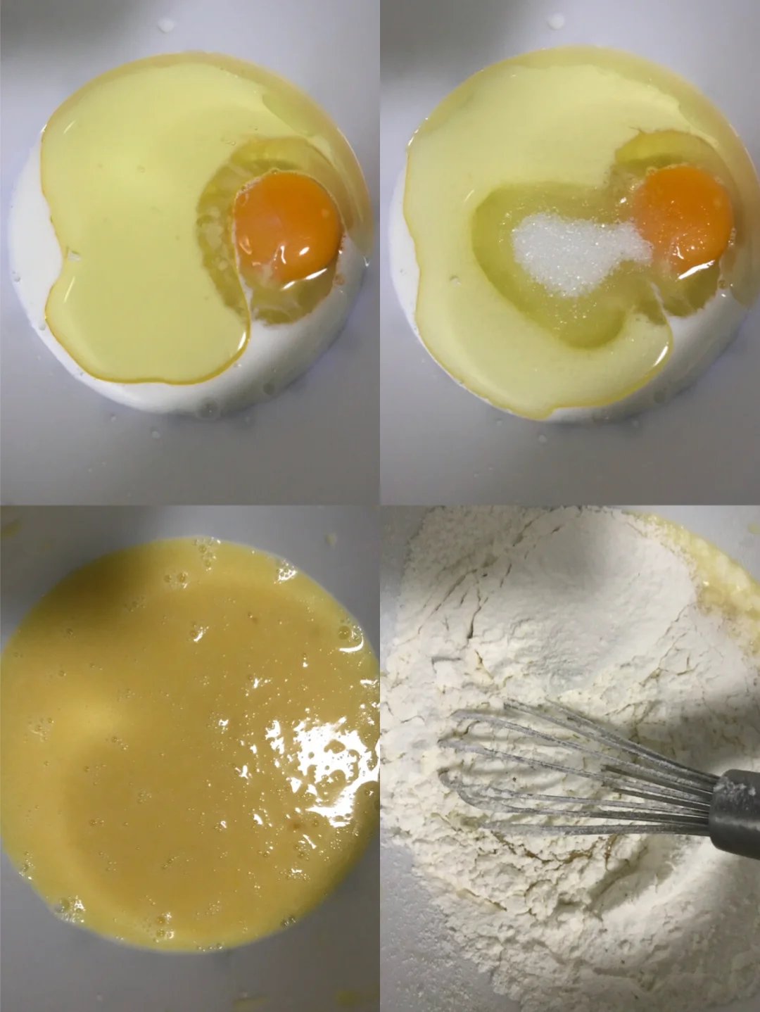 ✔️玉米油,牛奶,鸡蛋,糖混合均匀至乳化。