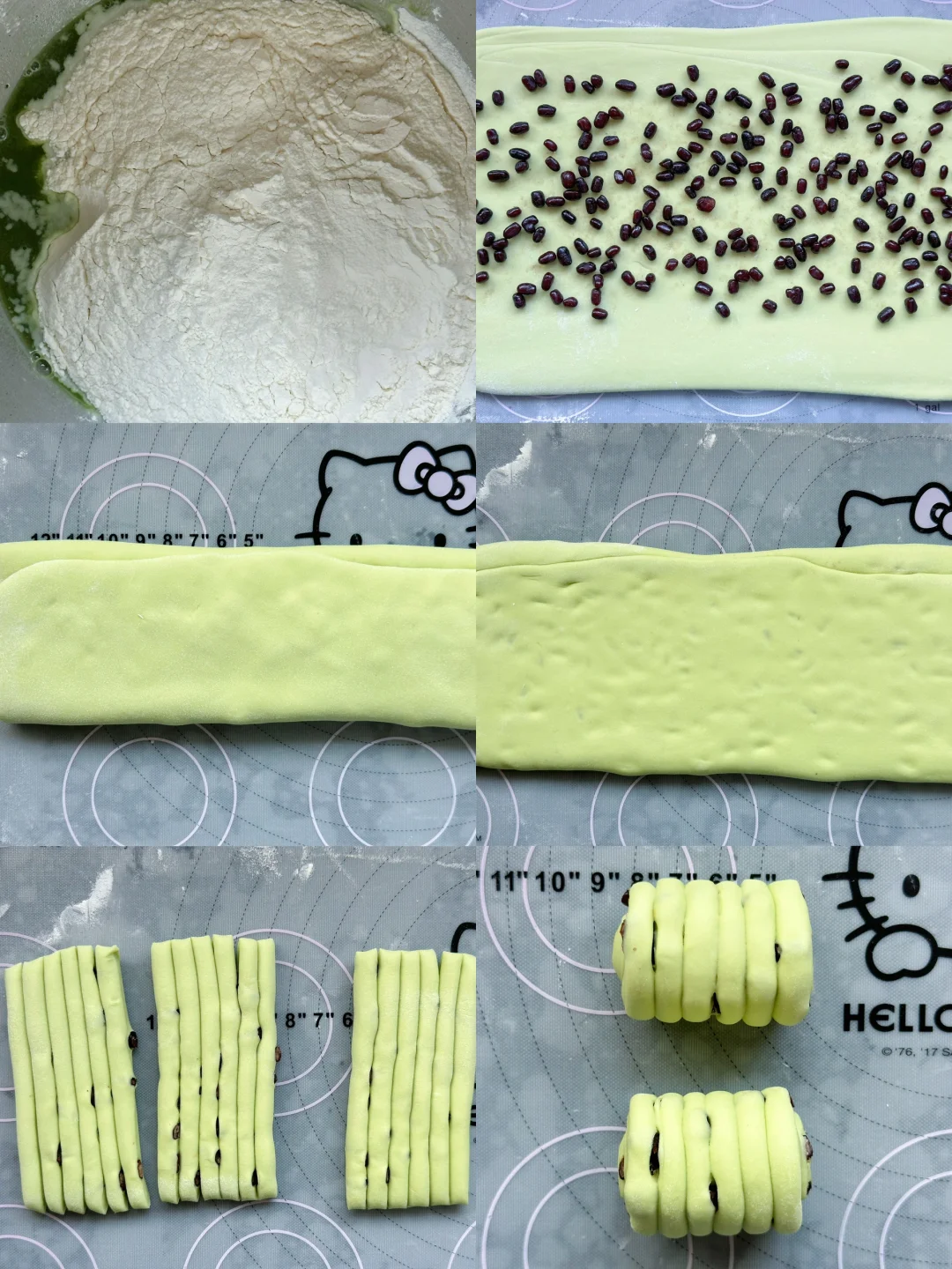 🔺酵母用水化开,再加入面粉、抹茶粉揉成光滑面团