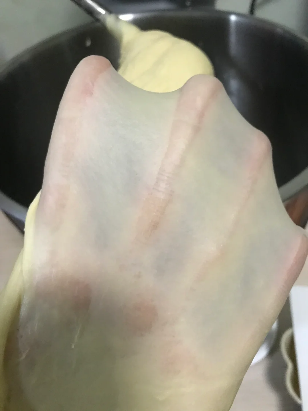 2️⃣除黄油以外的所有面团材料(包括波兰种)放入厨师机桶内揉成光滑的面团,加入黄油揉至完全拓展阶段。